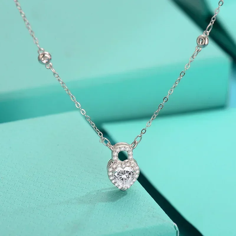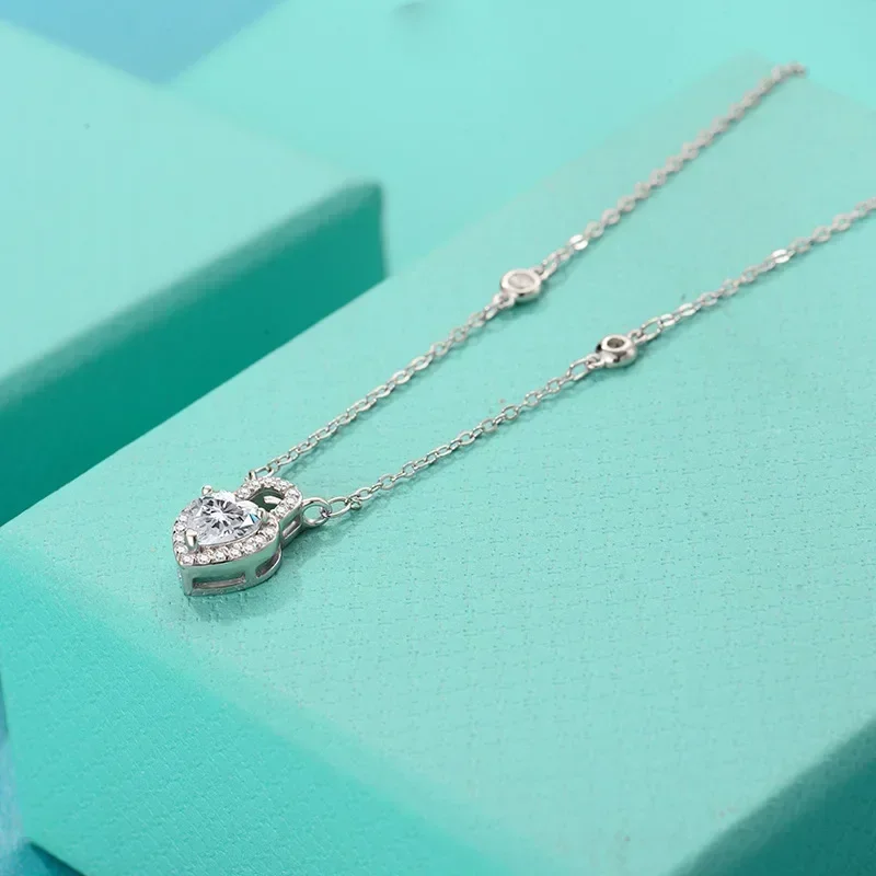 Real 925 Sterling Silver Heart Cut 0.8ct Moissanite Dancing Necklace Fashion Pendant Necklace Jewelry Gift Women
