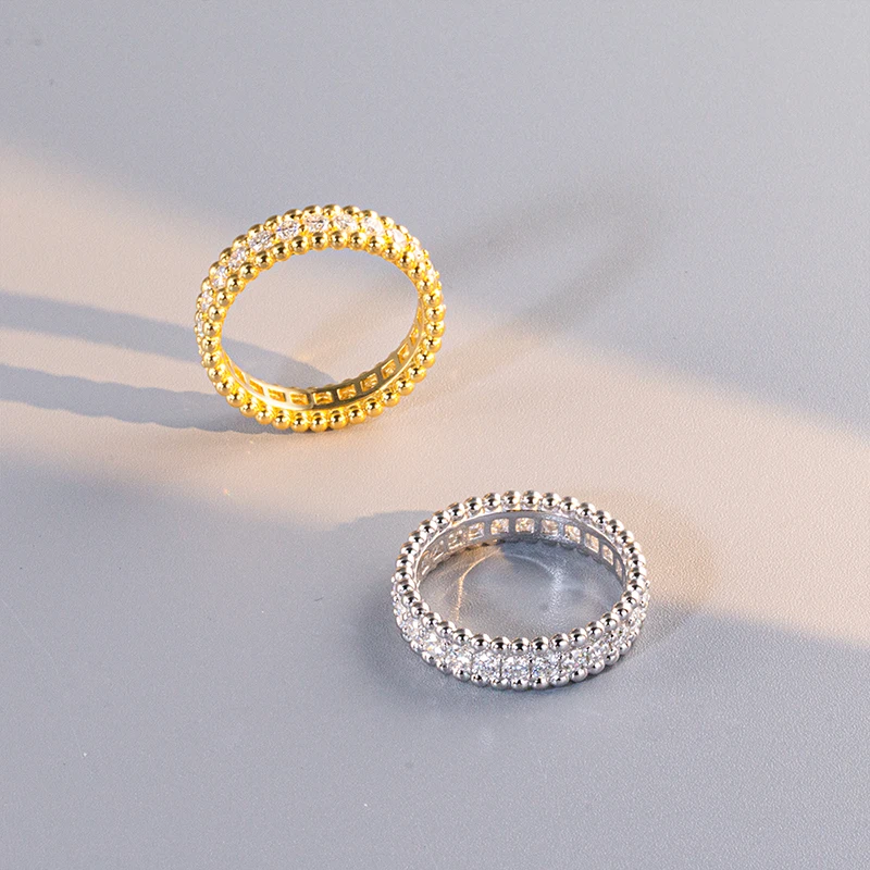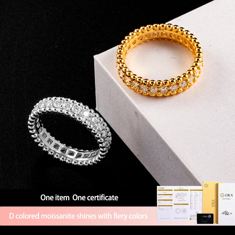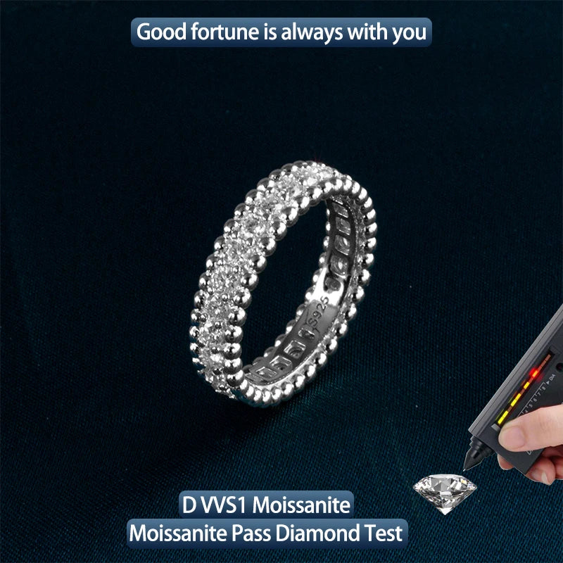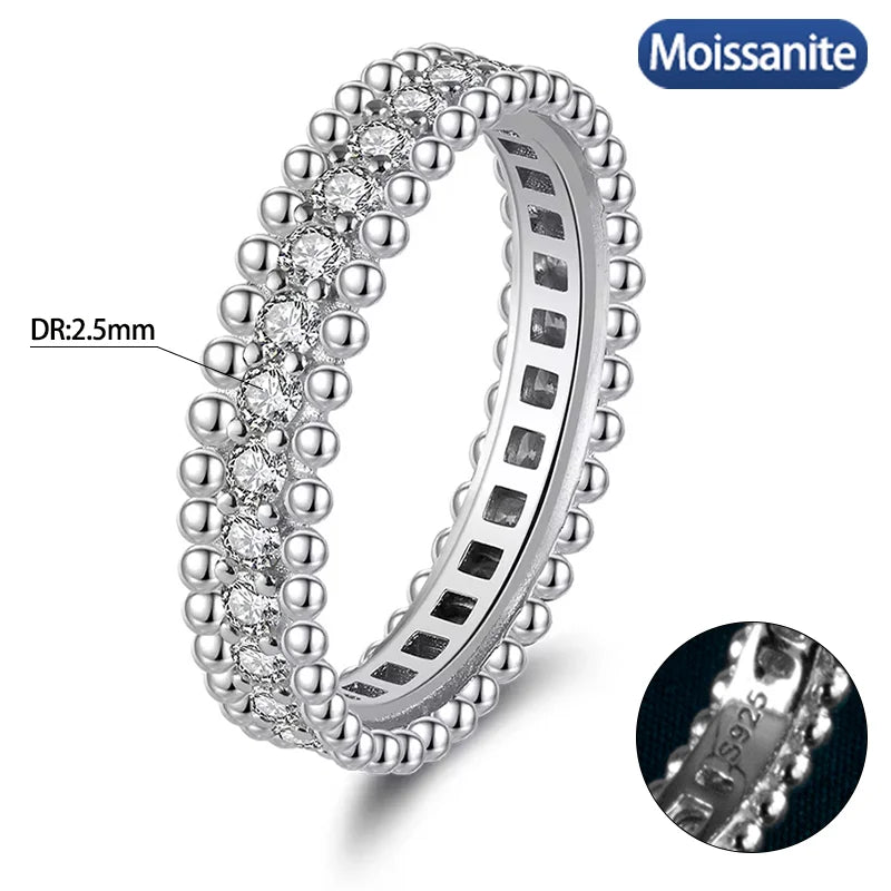 💎 Distinctive Design Appeal: The 5.8mm-wide band showcases a striking row of Moissanite stones paired with spherical details, creating uninterrupted shine. Ideal for both daily wear and special events, it effortlessly elevates any outfit.
