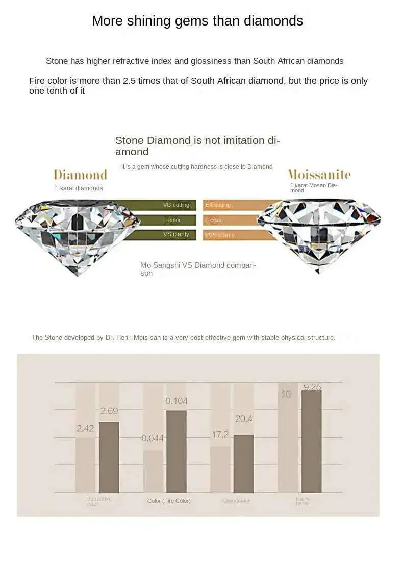 3. The fire of moissanite is more than 2.5 times that of South African diamonds, sparkling
