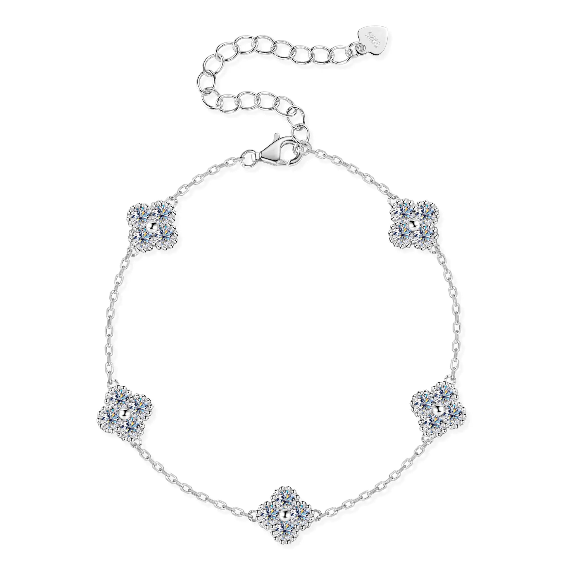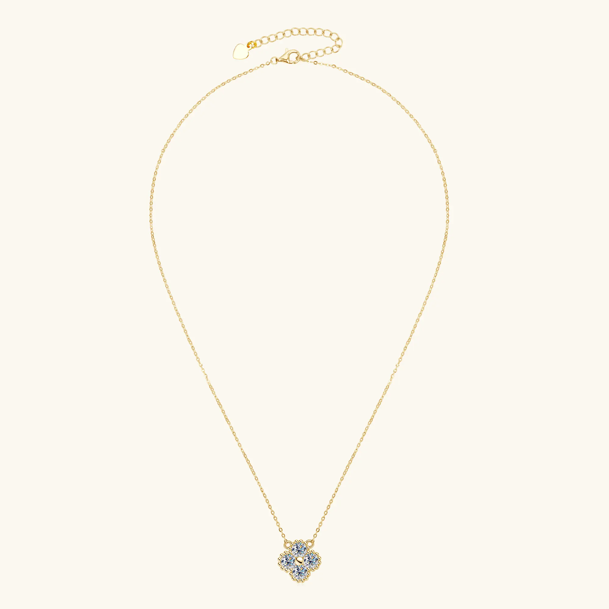 Sweetrain 3mm Certified Moissanite Pendant Necklace for Women Classic Clover Flower Neck Chain 100% Pure 925 Silver Chain Jewelry