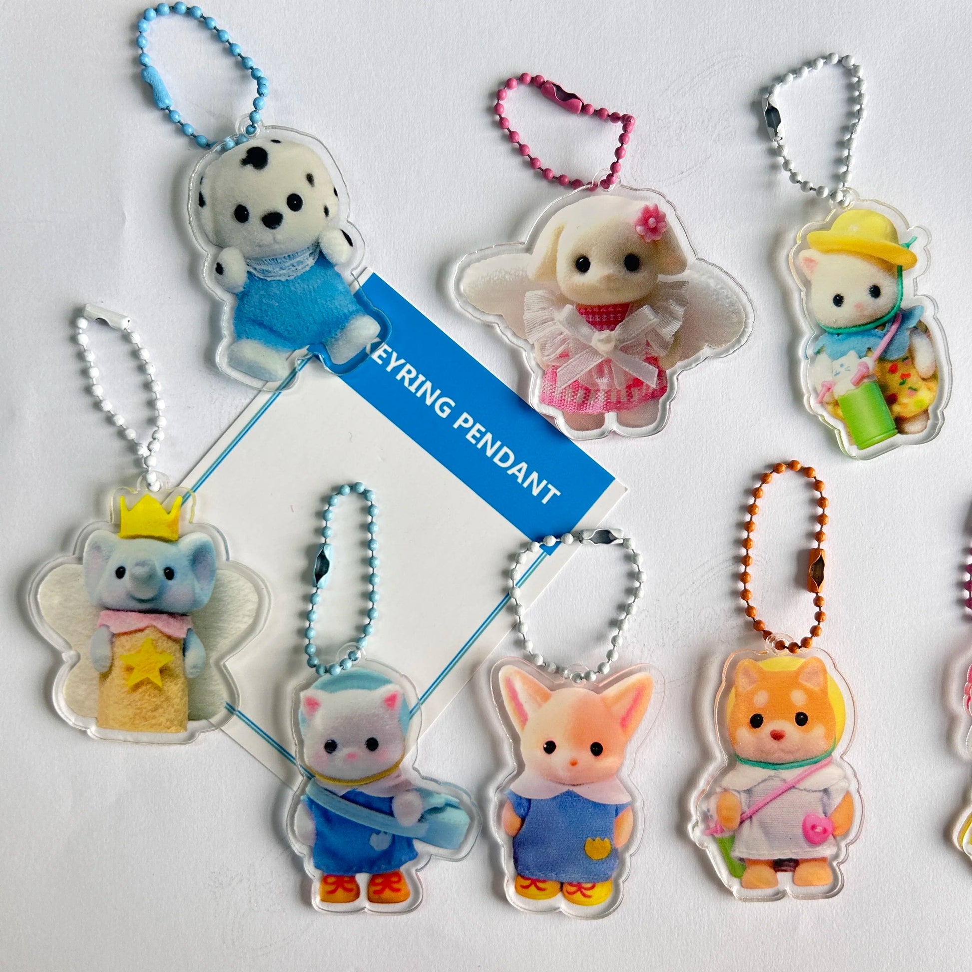 Sylvanian families keychain Cartoon Acrylic Printing Keyring Backpack Pendant Accessories INS Korean Style Decoration Girls Gift