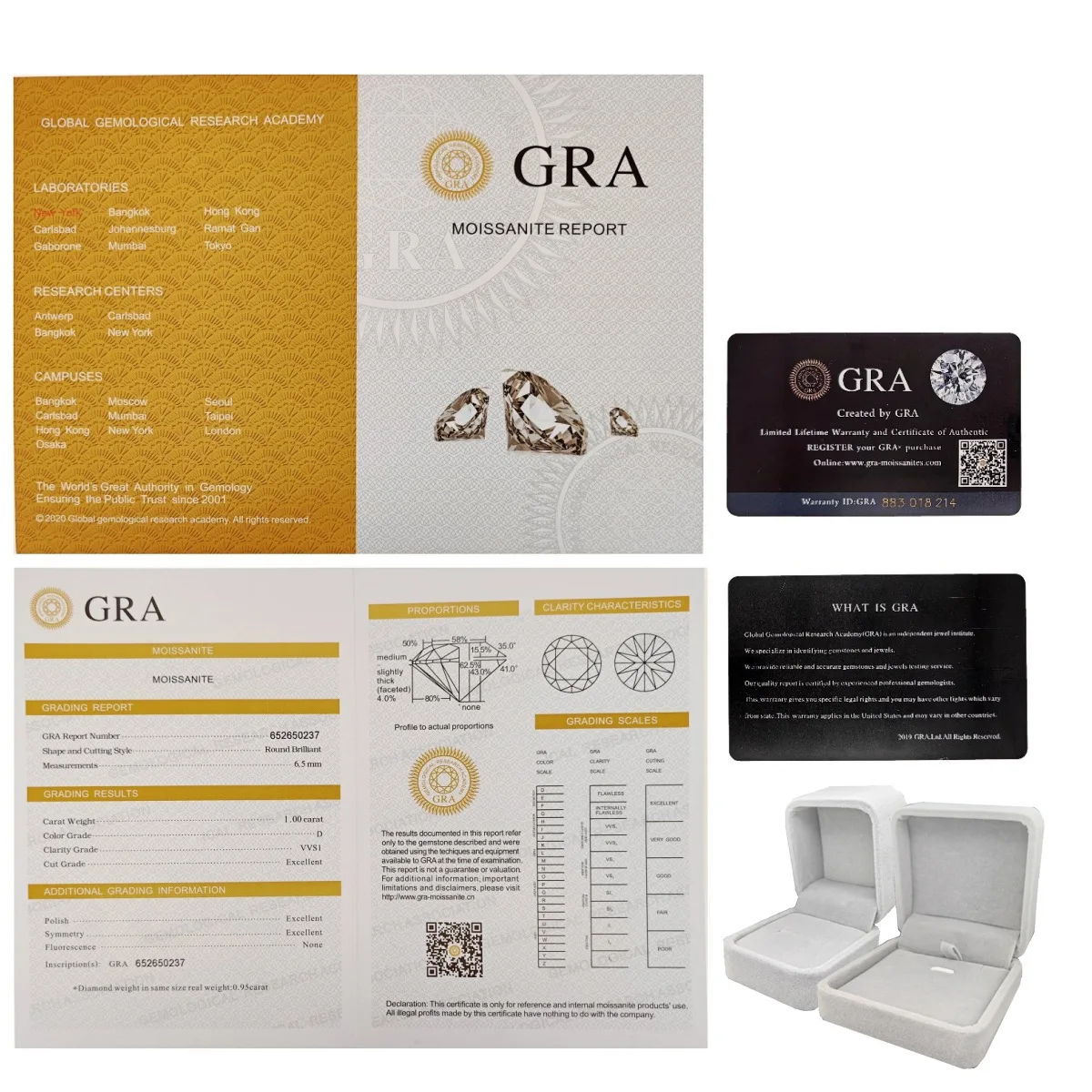 All stone we choose are 100% D color and vvs1 grade Mosonite,which has same optical and physical properties as a South African diamond that stone will never lose its brilliance but brighter than diamond.