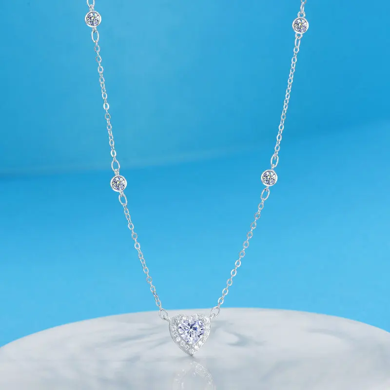 TY 0.8CT Moissanite 925 Sterling Silver Necklace for Women Heart Pendant Necklace D Color Shining Fine Jewelry Lab Diamond