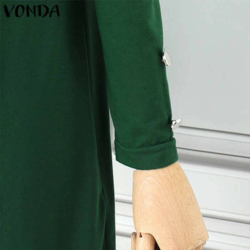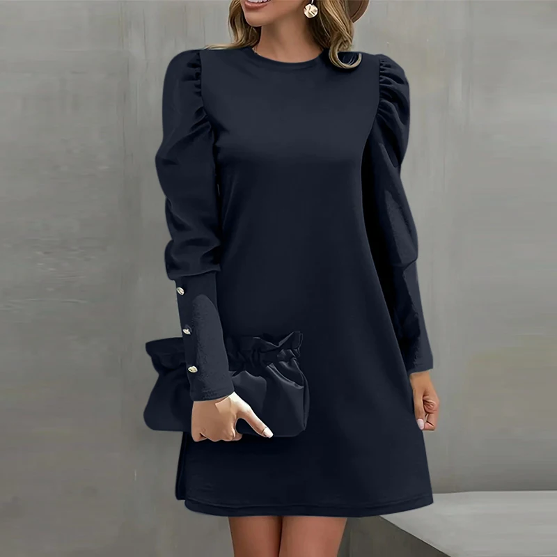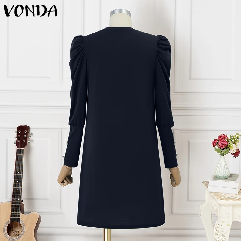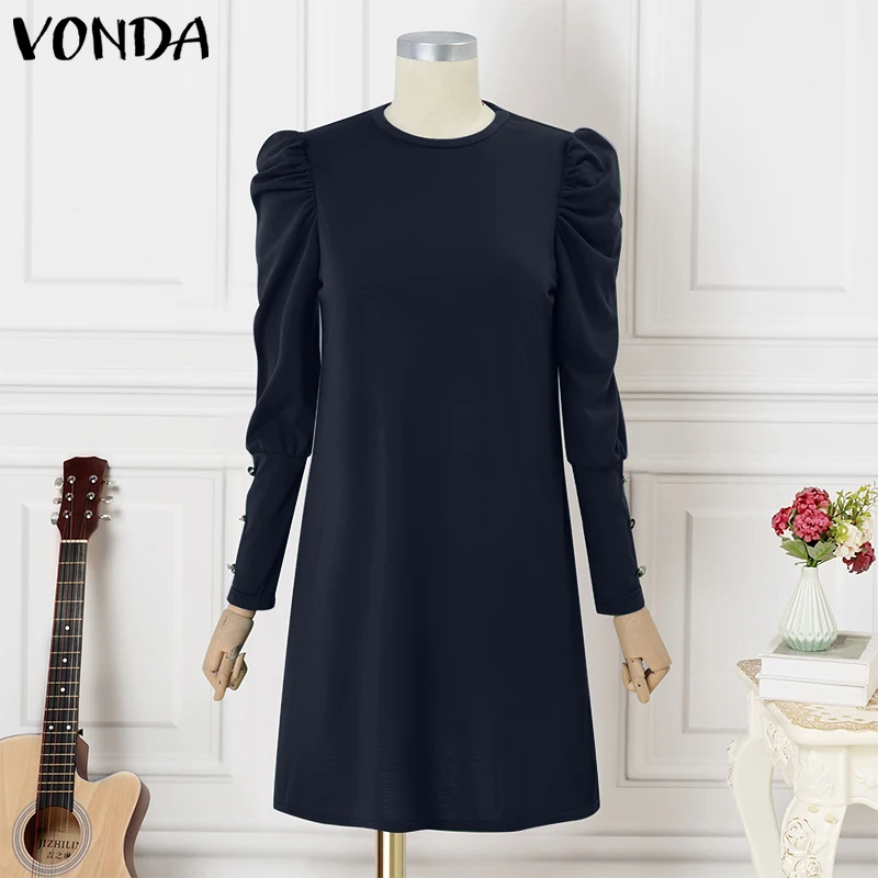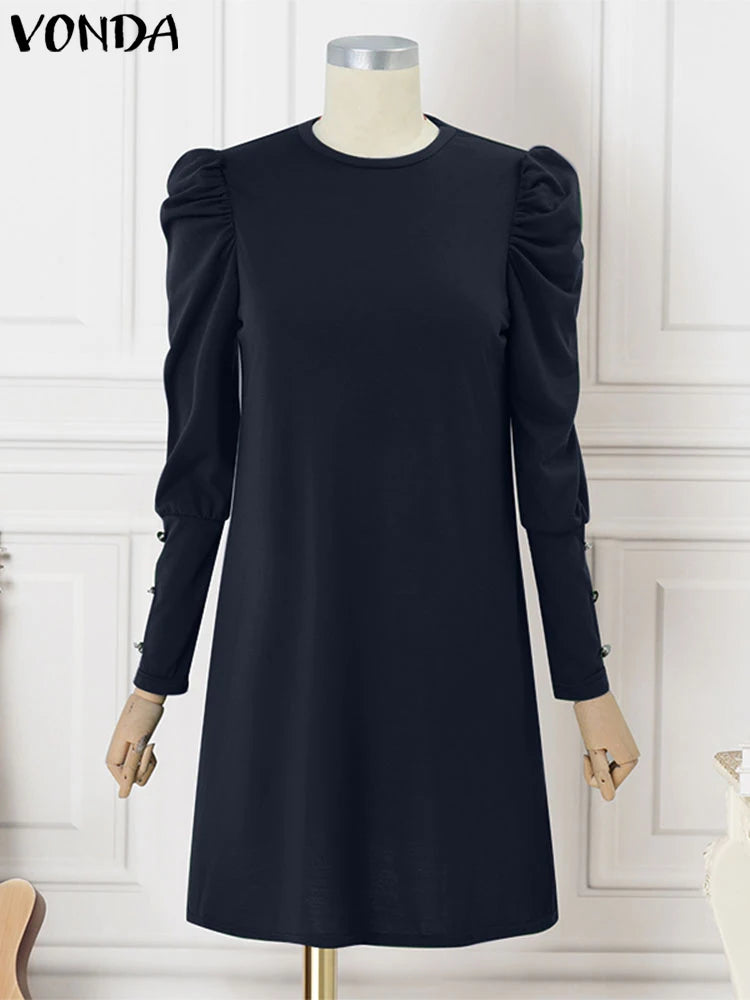 VONDA Elegant A-Line Mini Dress Casual Loose Solid Color Sundress 2025 Round Neck Long Lantern Sleeve Vestidos Robe Oversized