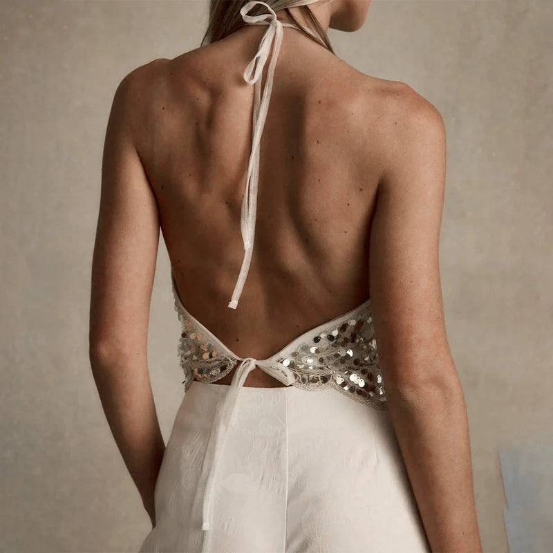 Womens Sequin Halter Tank Top Glitter Sparkly Backless Tie Up Sexy Crop Top Y2k Coquette Sleeveless Club Party Rave Tops Vest