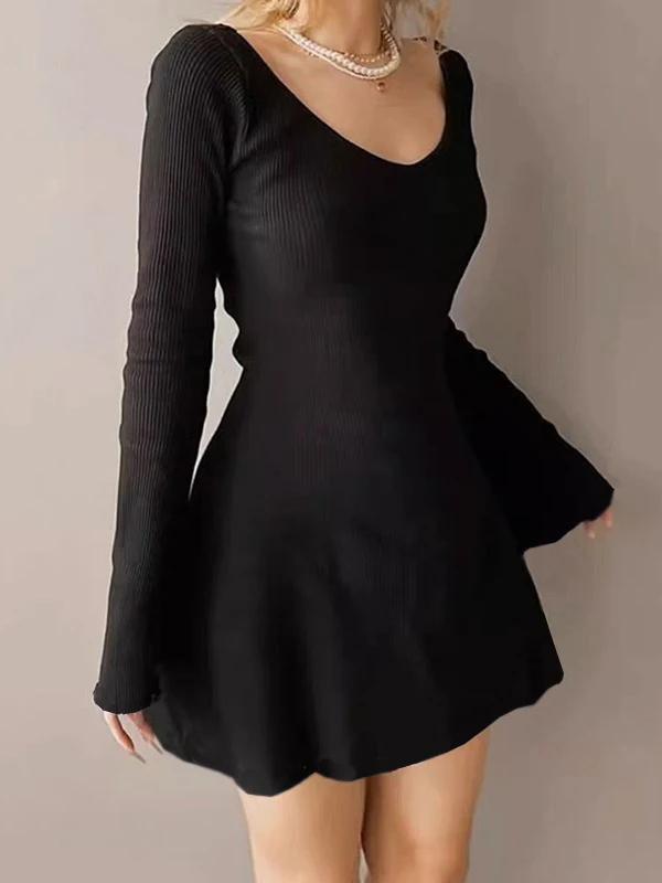 Women's Sexy Club Long Sleeve Mini Bodycon Dress Knitting Elegant Dress Suitable For Nightclub Family Party Vacation Leisure
