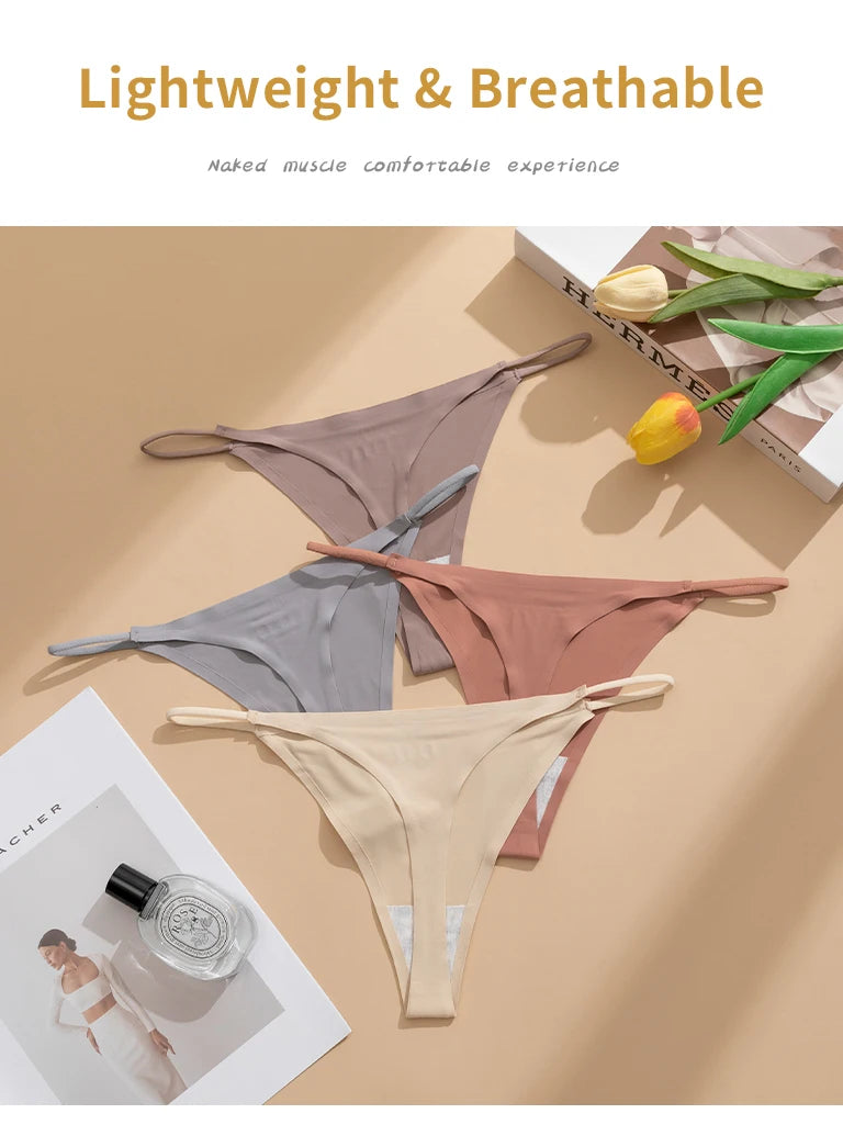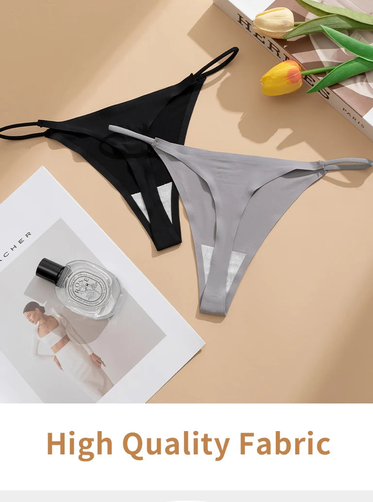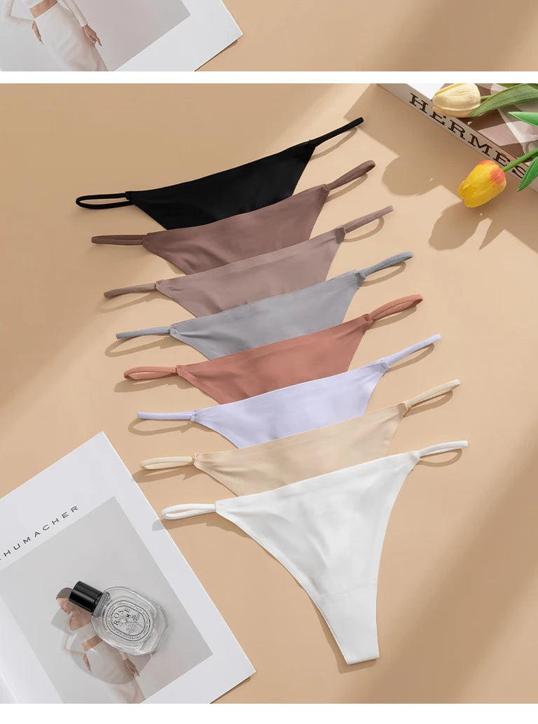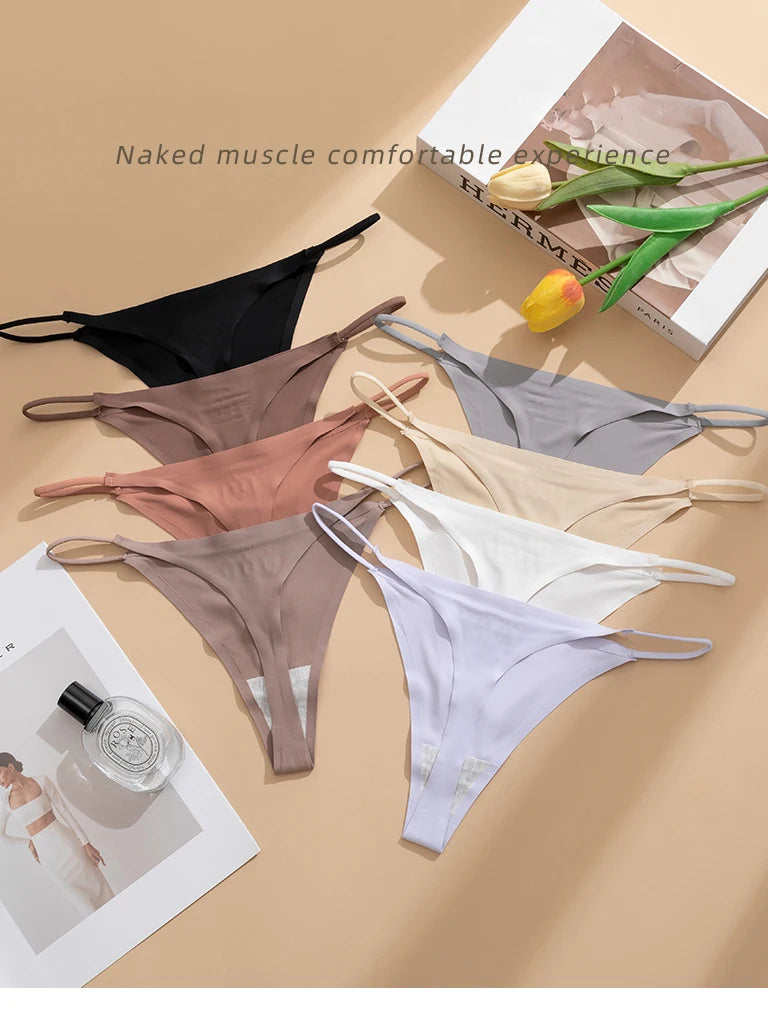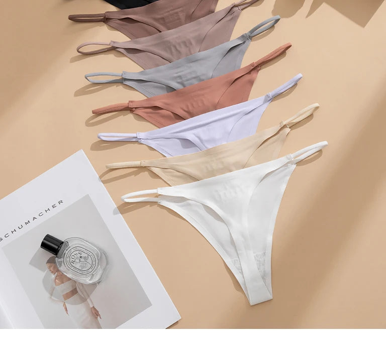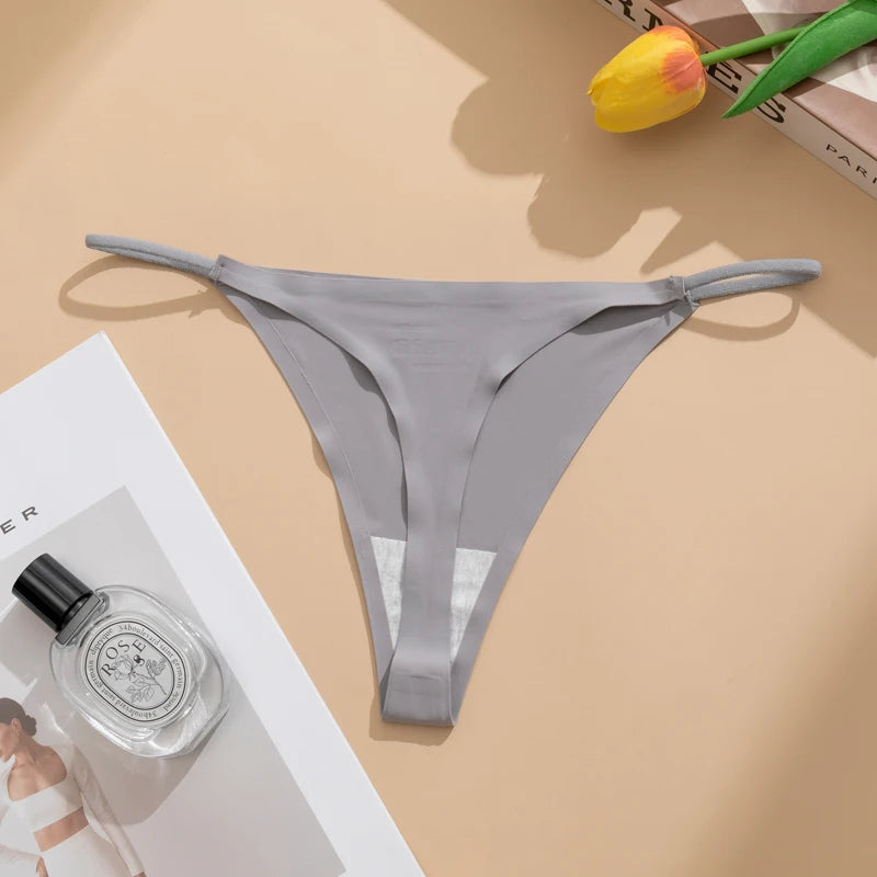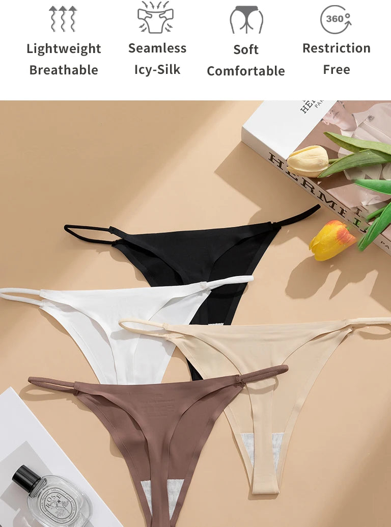 Women's Sexy Lightweight Ice Silk Seamless Knit Thong with Thin Straps - No Show Panty Underwear Lingerie Intimate Apparel