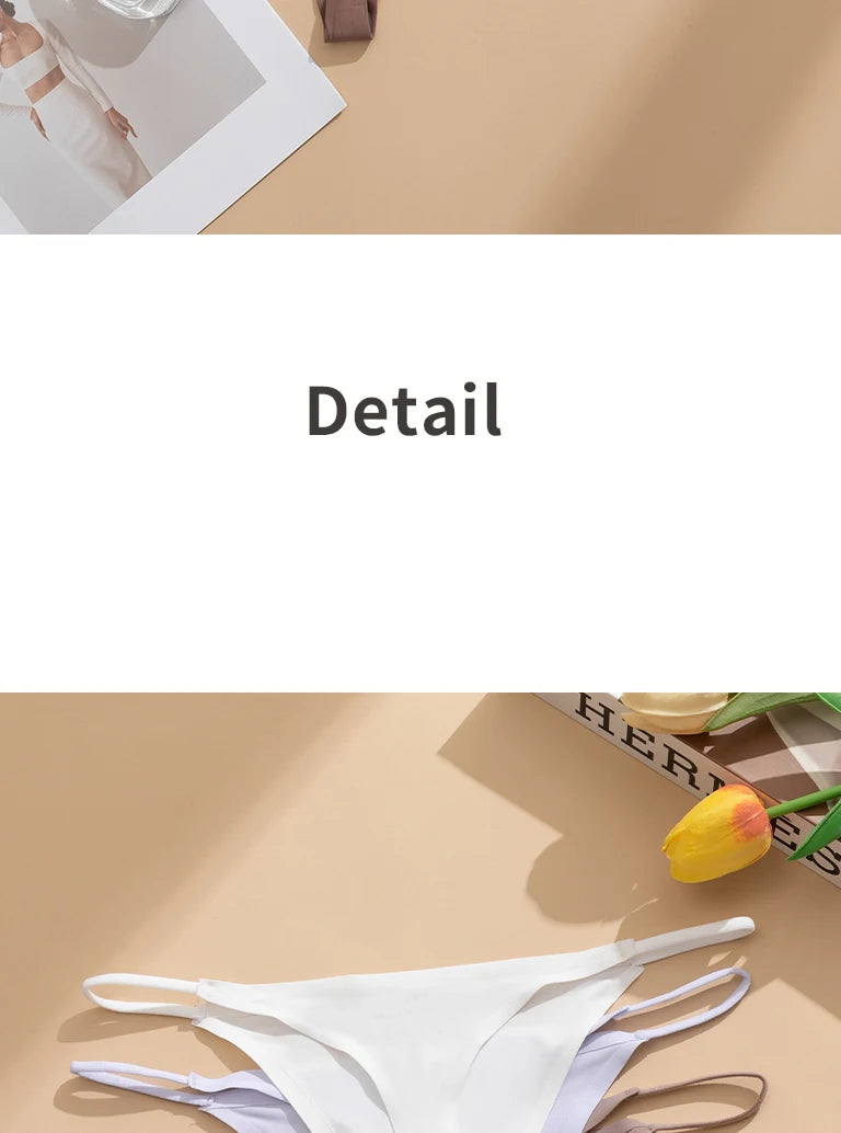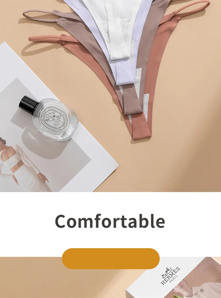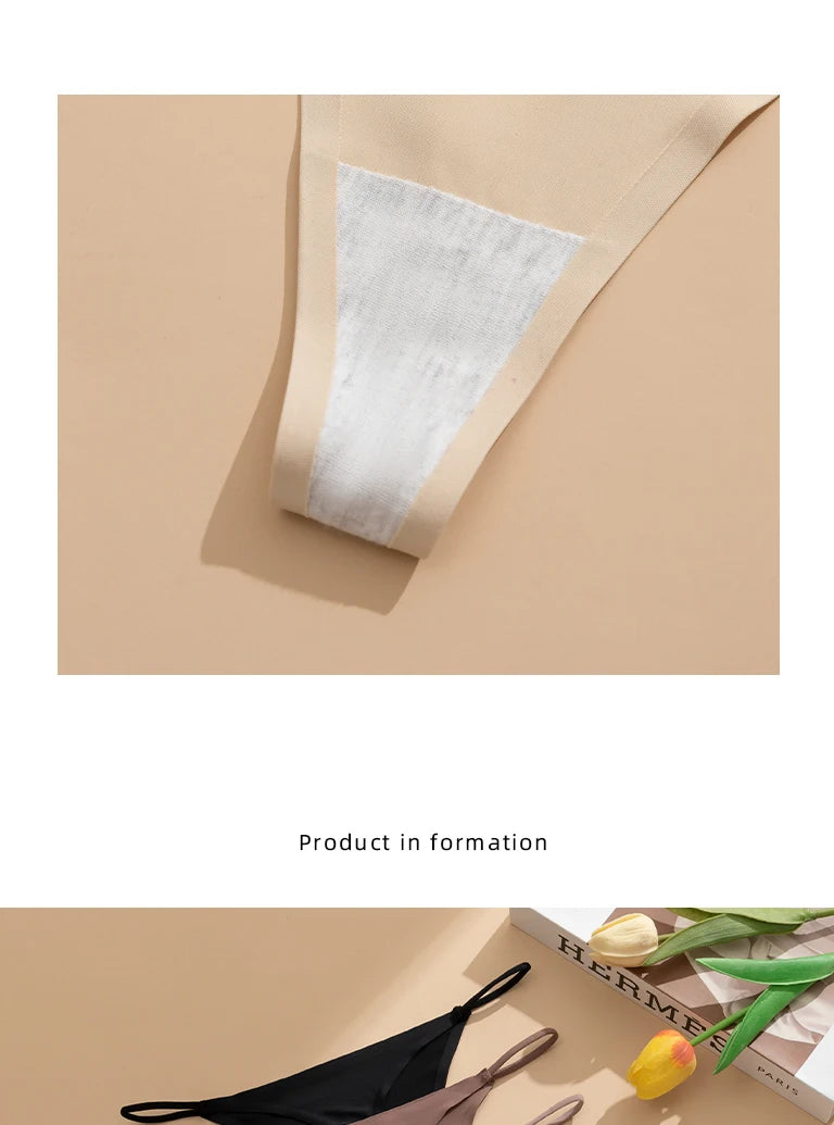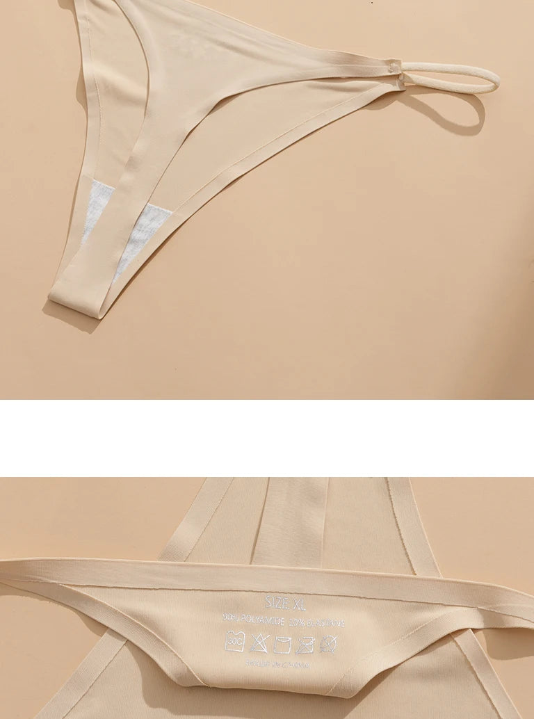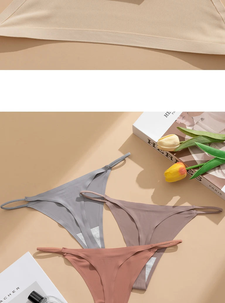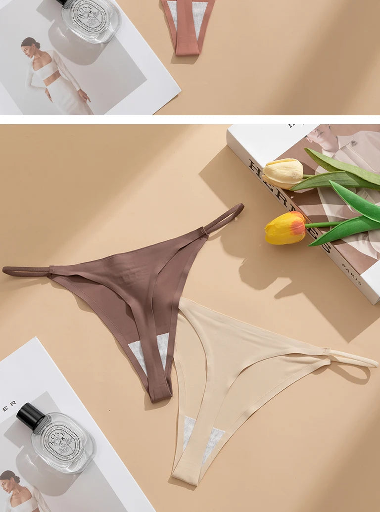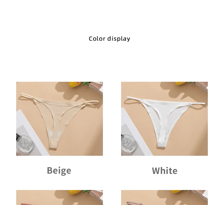 Women's Sexy Lightweight Ice Silk Seamless Knit Thong with Thin Straps - No Show Panty Underwear Lingerie Intimate Apparel