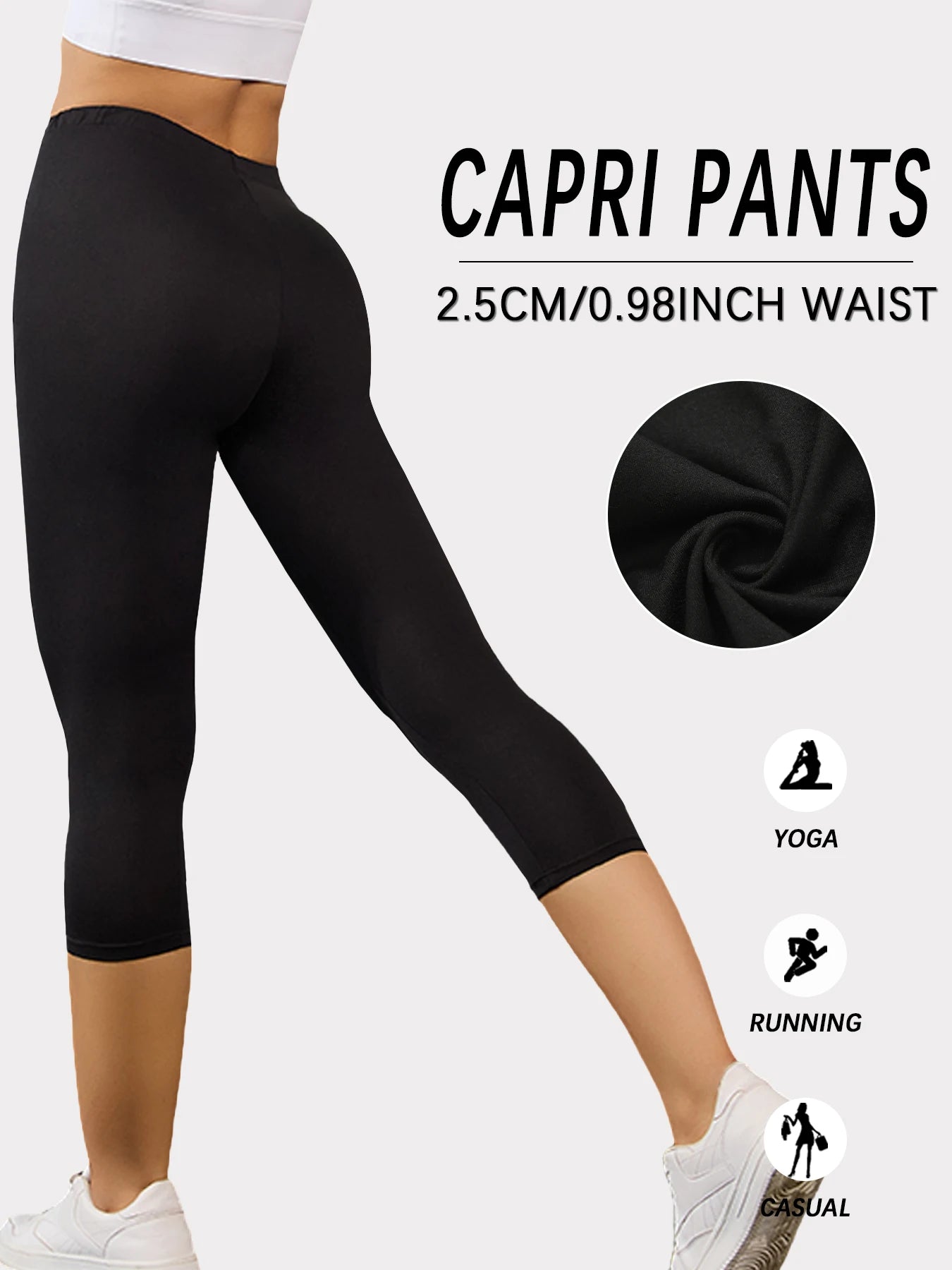Women's Super Soft Capri Pants High Stretchy Breathable Pants No See Through Workout Running Yoga Athletic Pants Gym Leggings