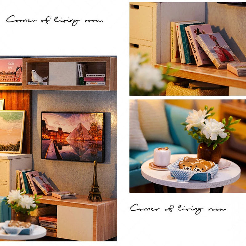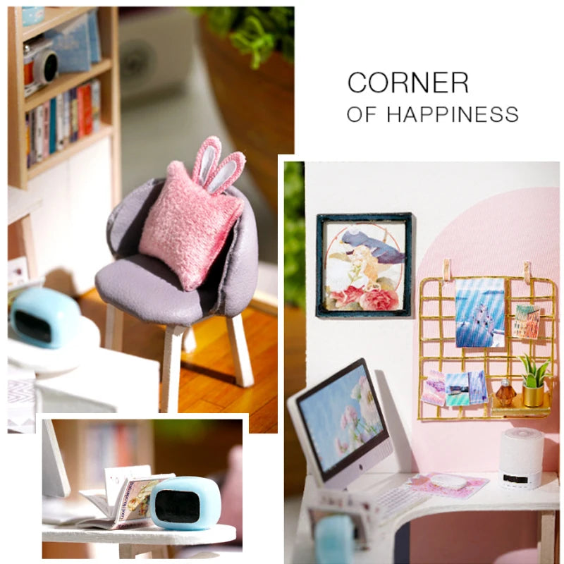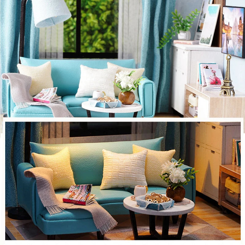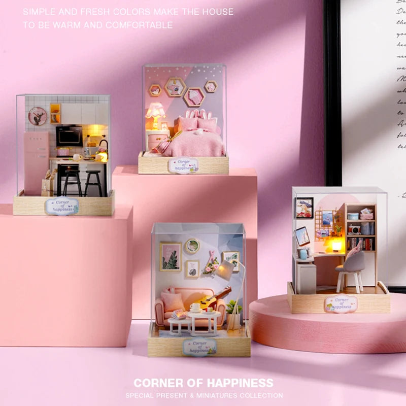 Wooden Mini Miniature Doll House DIY Small House Kit 3D Puzzle Building Assembly House Furniture Toy Children's Birthday Gifts