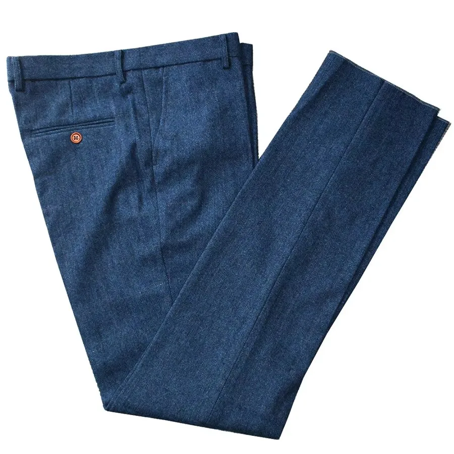 Wool Blue Herringbone Retro Gentleman Style Custom Made Men's Suits Tailor Suit Blazer Suits For Men 3 piece (Jacket+Pants+Vest)