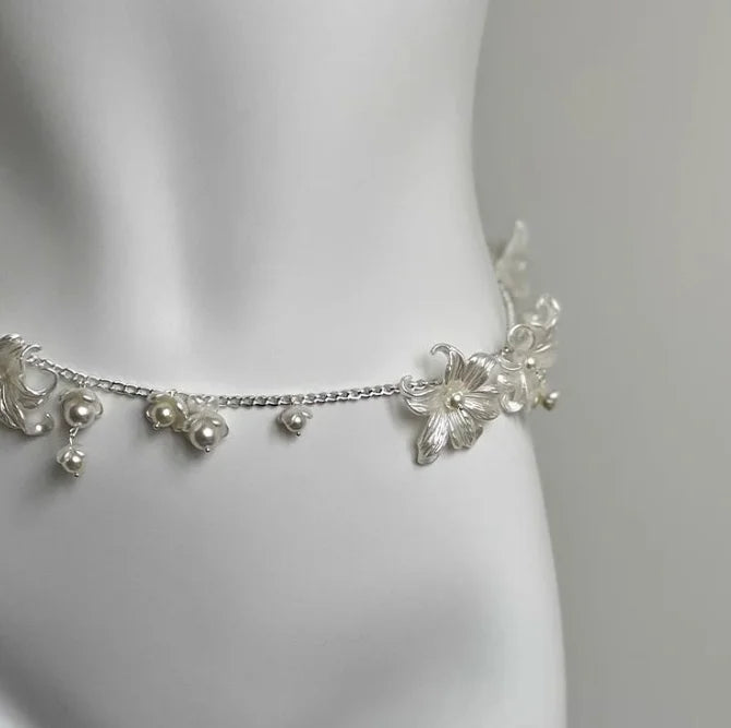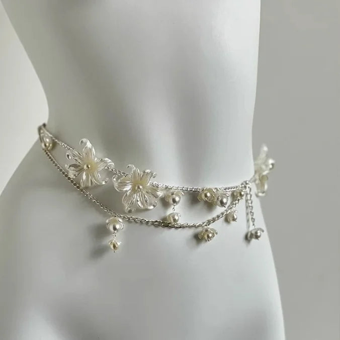 Light luxury and sexy tassel flower pearl multi-layer waist chain, fashionable and high-end, personalized and niche temperament, paired with waist accessories