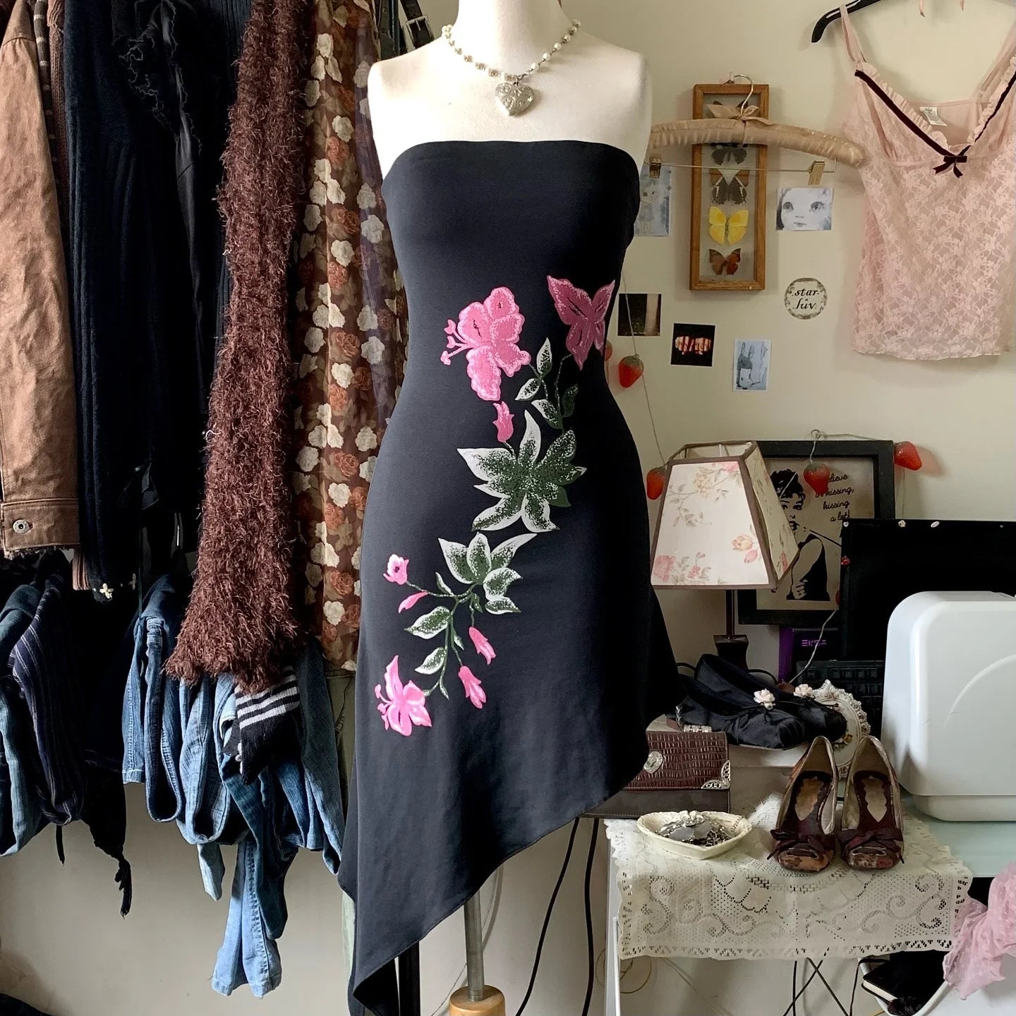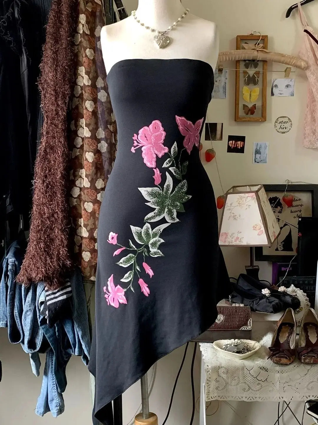 Y2k Summer Sexy Mini Dress Women Sleeveless Strapless Streetwear Backless Bodycon Black Dress Women Fashionable A-LINE Dresses