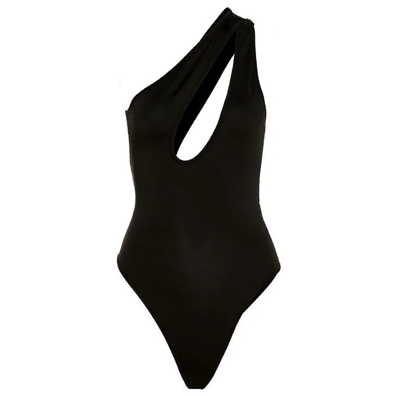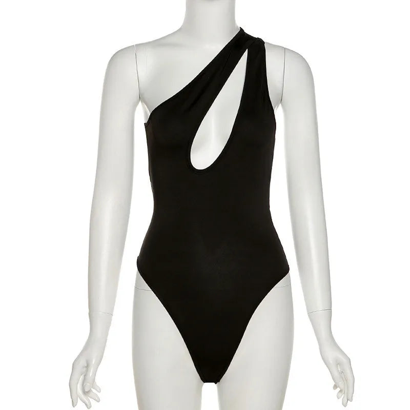 Y2k Summer Sexy Woman Clothes Black Bodysuit One Shoulder Bodycon Sexy Women Cut Out Ladies Overalls Tops Body Femme Bodysuits