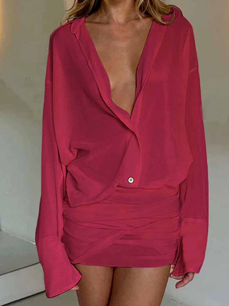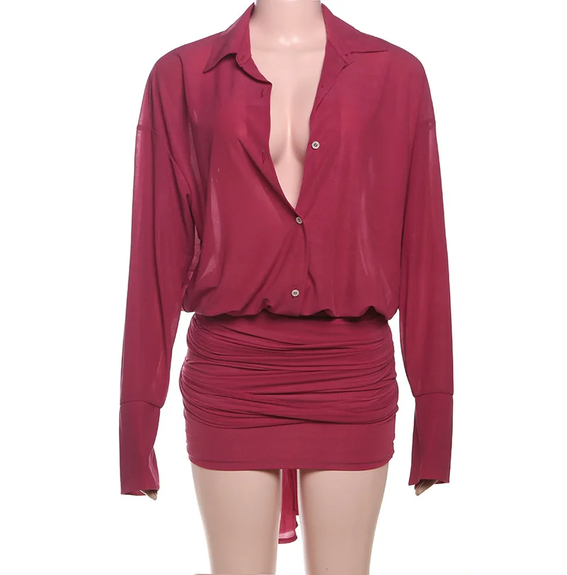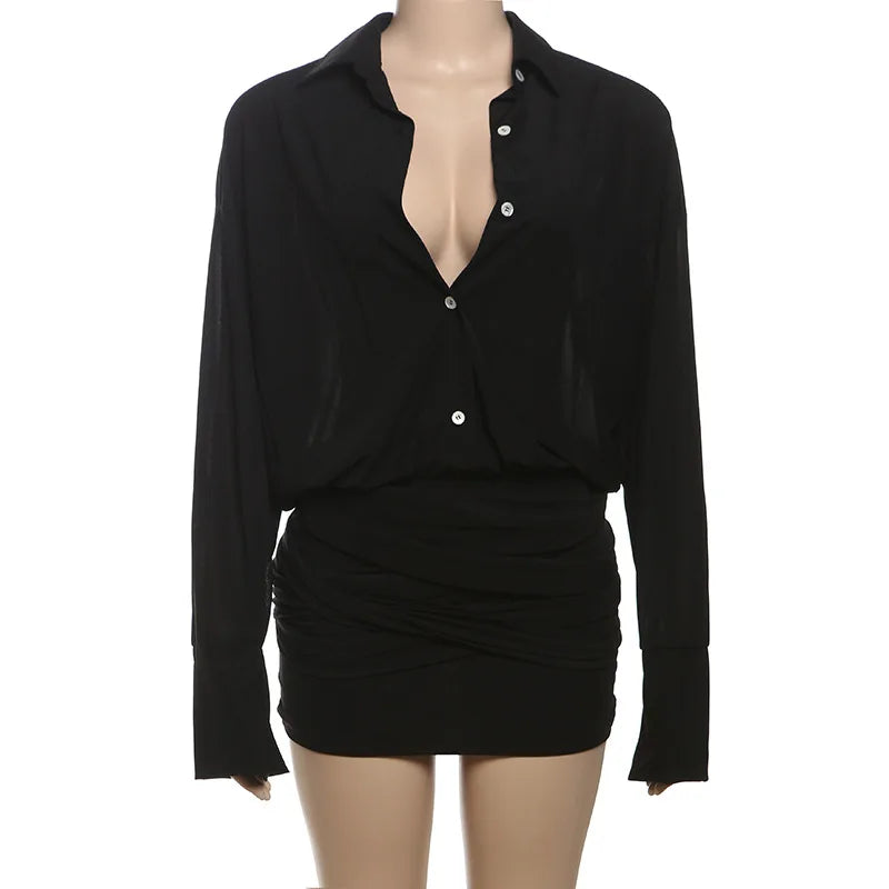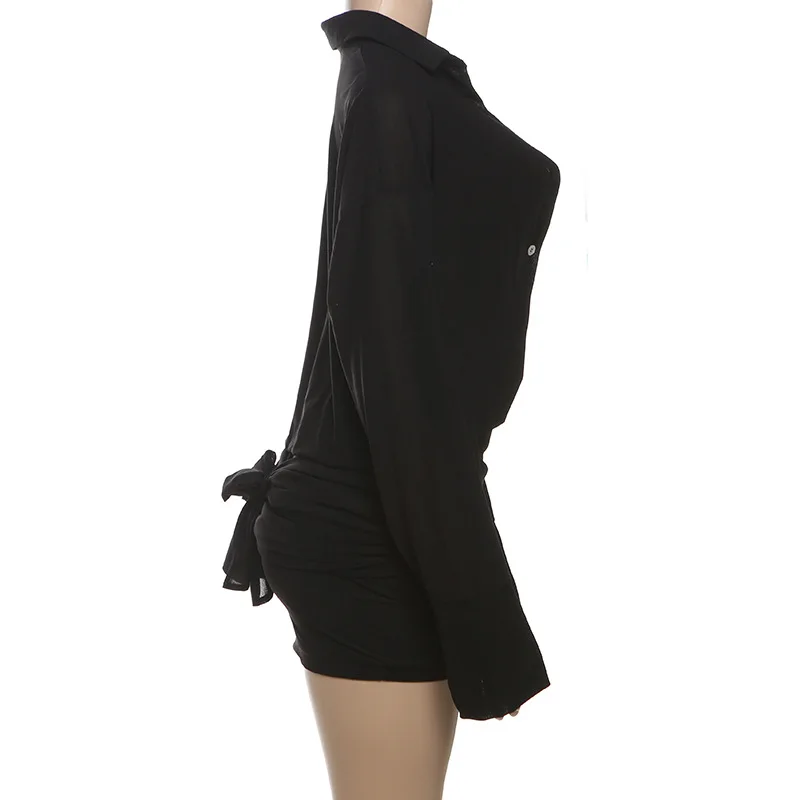 Yellow Button Up Office Shirt Dresses for Women 2025 Summer Fashion Lapel Long Sleeve Sexy Y2K Bandage Bodycon Mini Dress Ladies