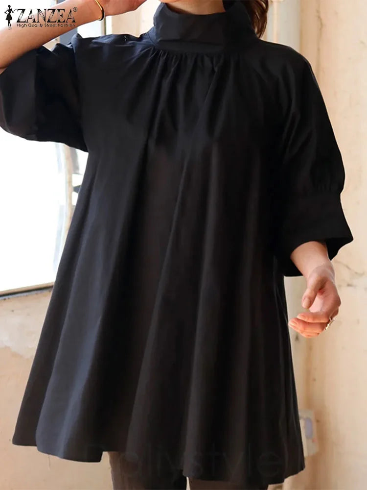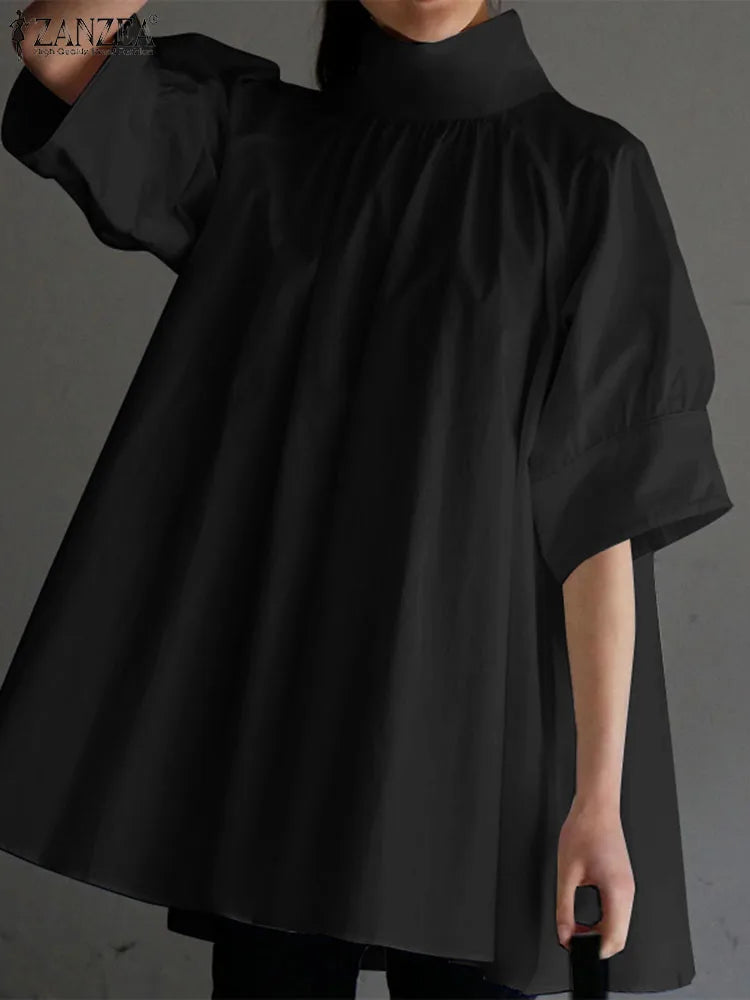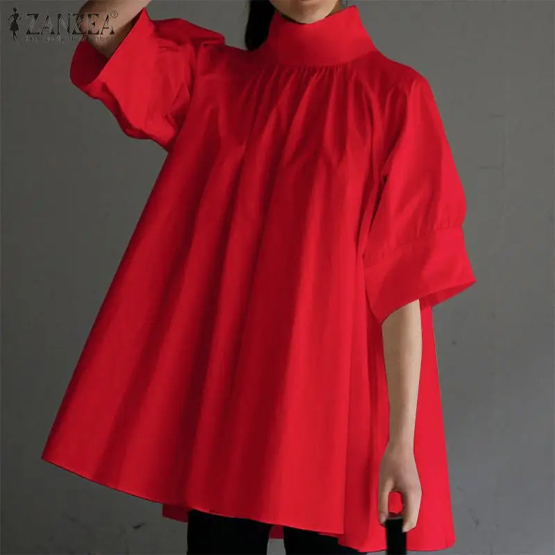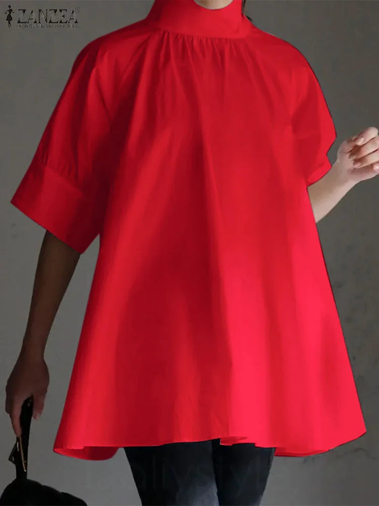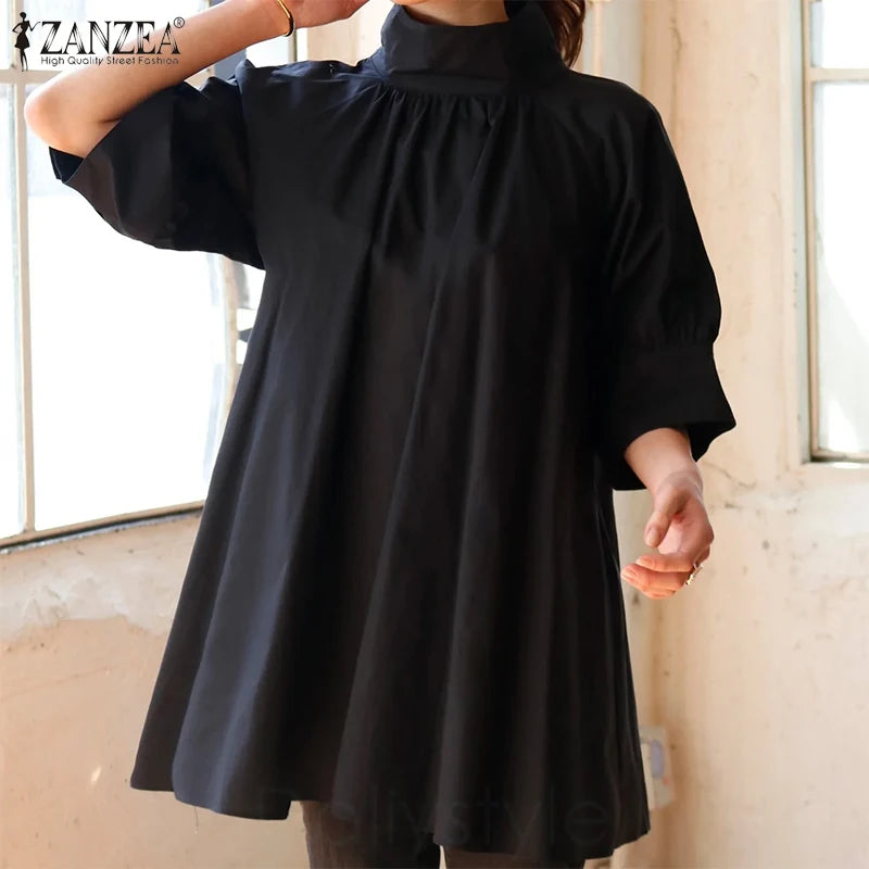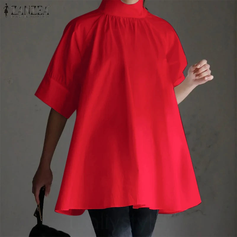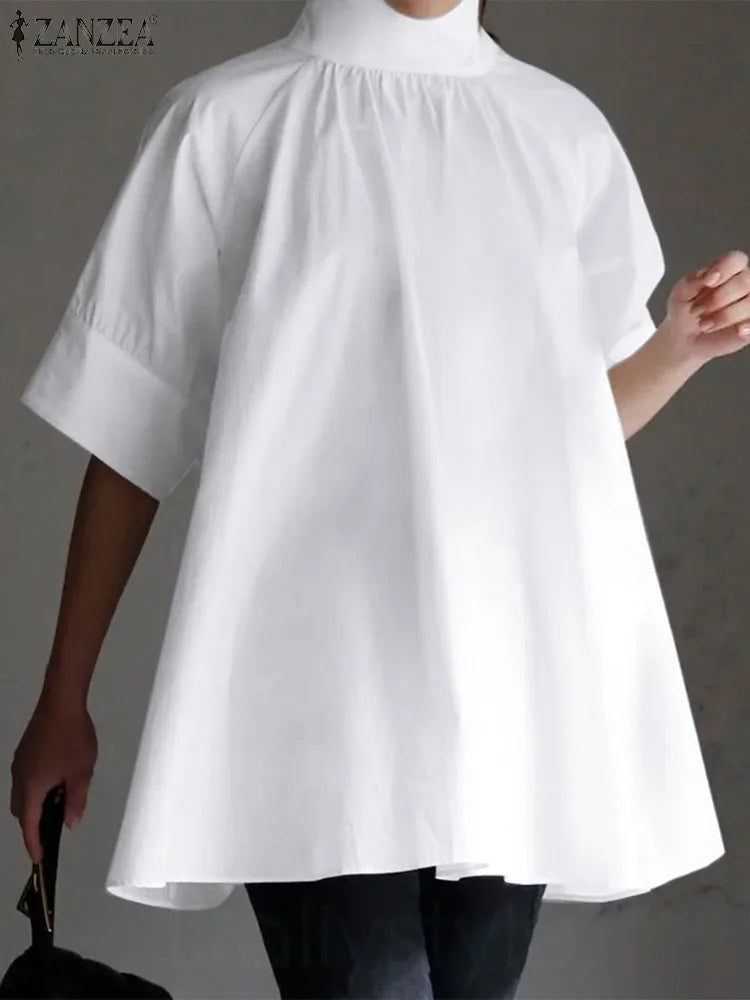 ZANZEA Elegant Women High Collar Half Sleeve Blouse Summer Casual Loose Shirt Fashion Work OL Tops Female Party Blusas Chemise