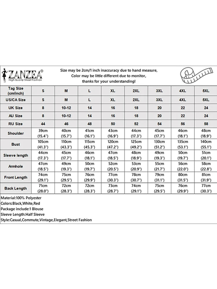 Item Type:Blouse Material:100% Polyester Colors:Black,White,Red Package include:1 Blouse Cutting:Loose Stretch:Not Stretchable Collar:High Neck Sleeve Style:Puff Sleeve Sleeve Length:Half Sleeve Features:Slit Pattern:Solid Thickness:Standard Style:Casual,Commute,Vintage,Elegant,Street Fashion Season:Summer,Autumn Occasion:Daily,Office,Holiday,Home,Casual,Travel Label: Yes Attention: 1. Due to different computers, there may be subtle color difference between the object and the image. Please don't shoot if you mind. Thank you. 2. There may be manual measurement error of 1-3cm. Please understand the inconvenience. 3. Please refer to the real object. The model pictures are for reference only. 4. Attention!!! Please check the size chart carefully before ordering. |