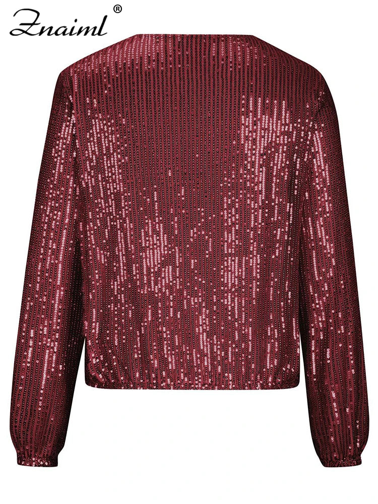Znaiml Women Luxury Sequin Jacket Y2k Harajuku Green Color Zipper Long Sleeve Short Coat Autumn Winter Ladies Night Clubwear New