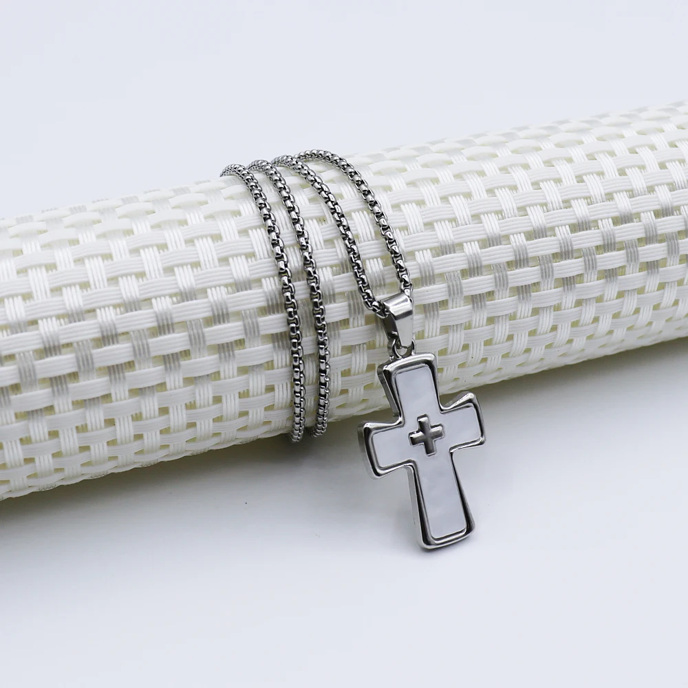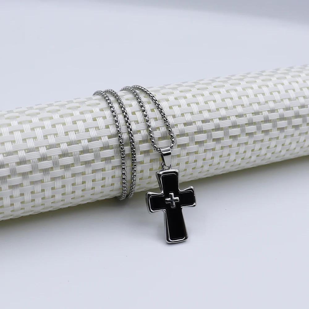 1 Piece Cross Pendant Necklace Men Tide Titanium Steel Niche Design Hip Hop Style Sweater Chain Women Holiday Gift