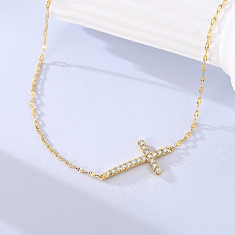 2025 New 925 Sterling Silver Necklace Golden Cross Simple Necklaces for Women Anniversary Birthday Jewelry Gift Female