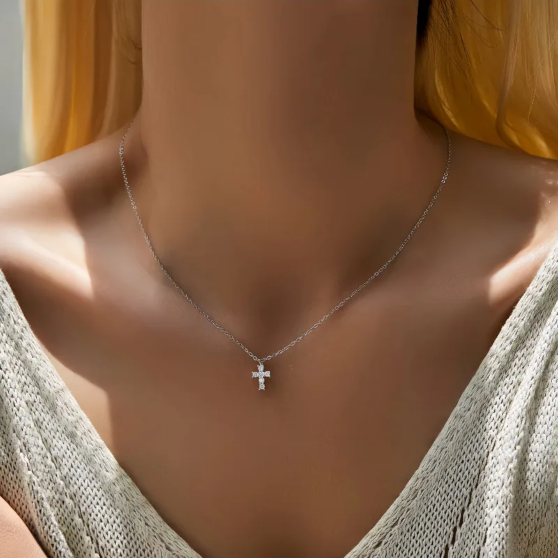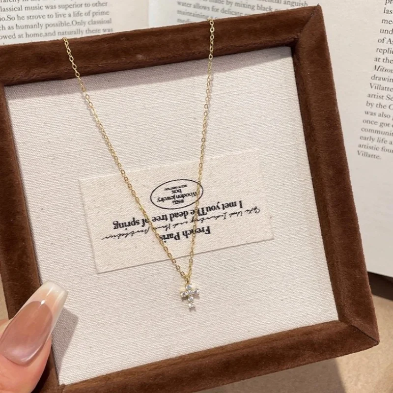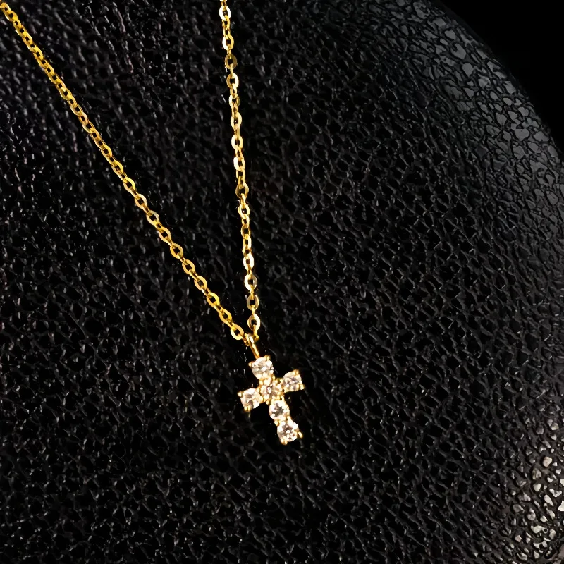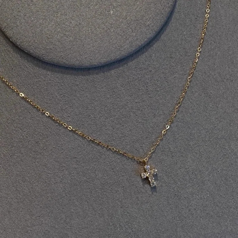 925 Sterling Silver Electroplated Real Gold Inlaid Zircon Cross Pendant Necklace for Women Fashionable Temperament Jewelry Gifts
