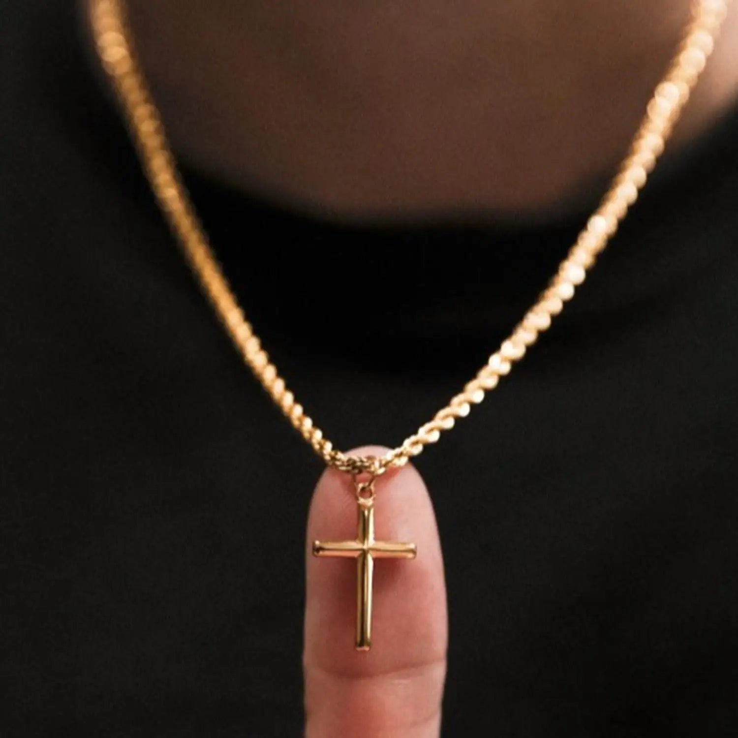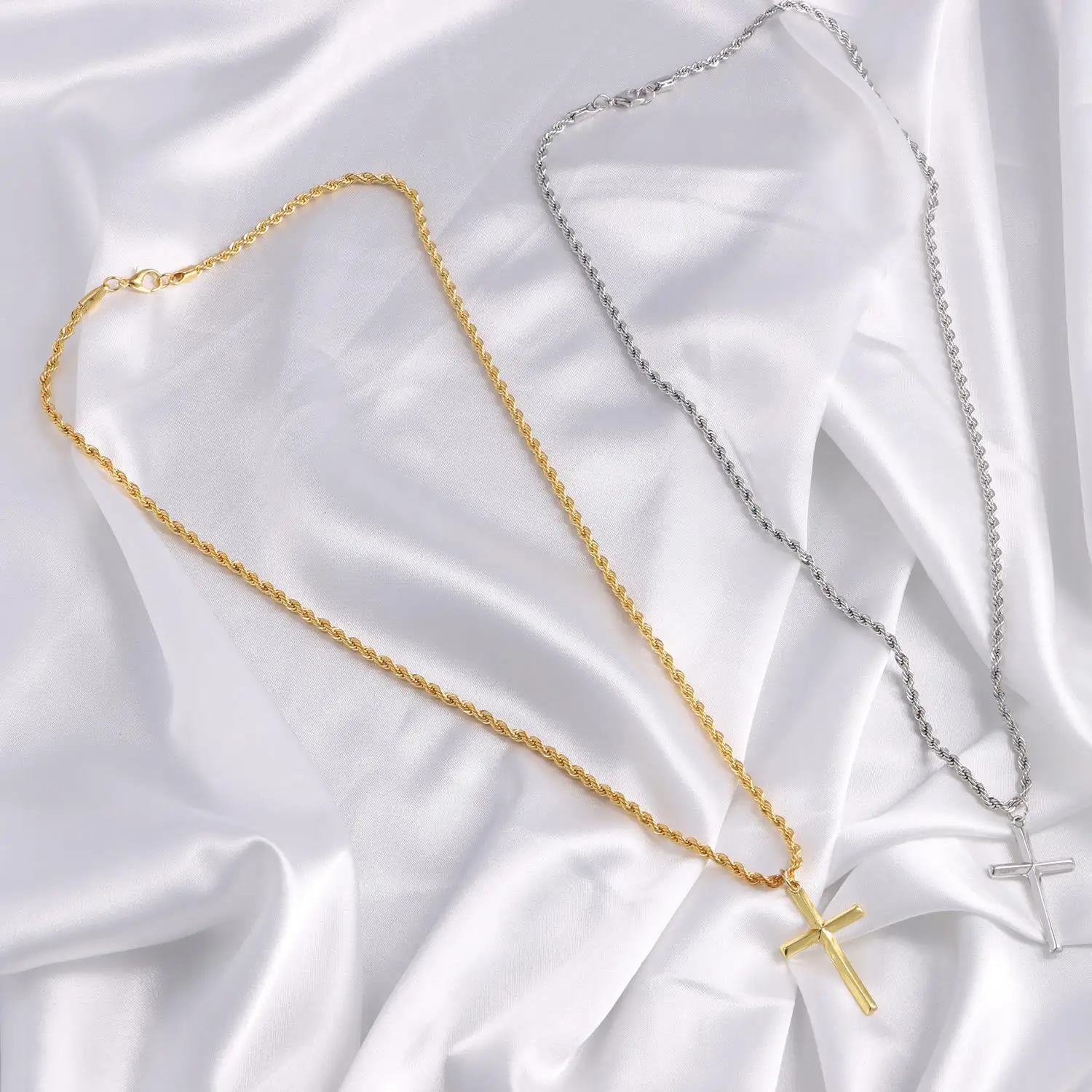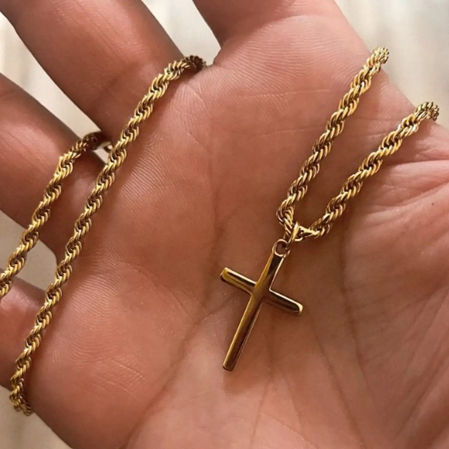 Stainless Steel Cross Pendant Necklace for Men Boys 18K Gold Plated Silver Simple Twisted Chain Fashionable Jewelry Beach Party