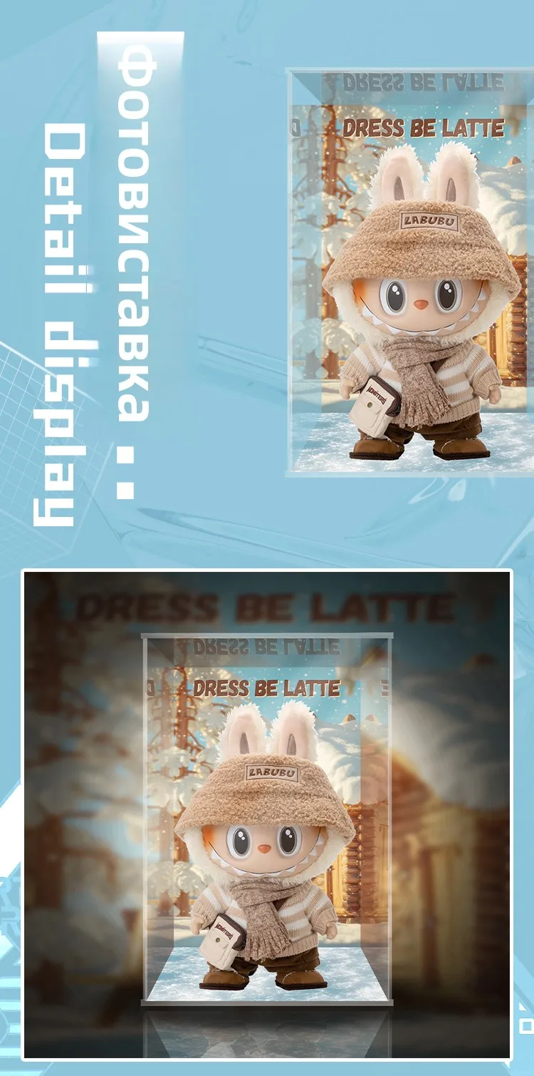 Unmoveable MART Labubu Large Plu Latte Doll Trendy Toy Display Box Collectible Figure ow Case Anime Cartoon Props