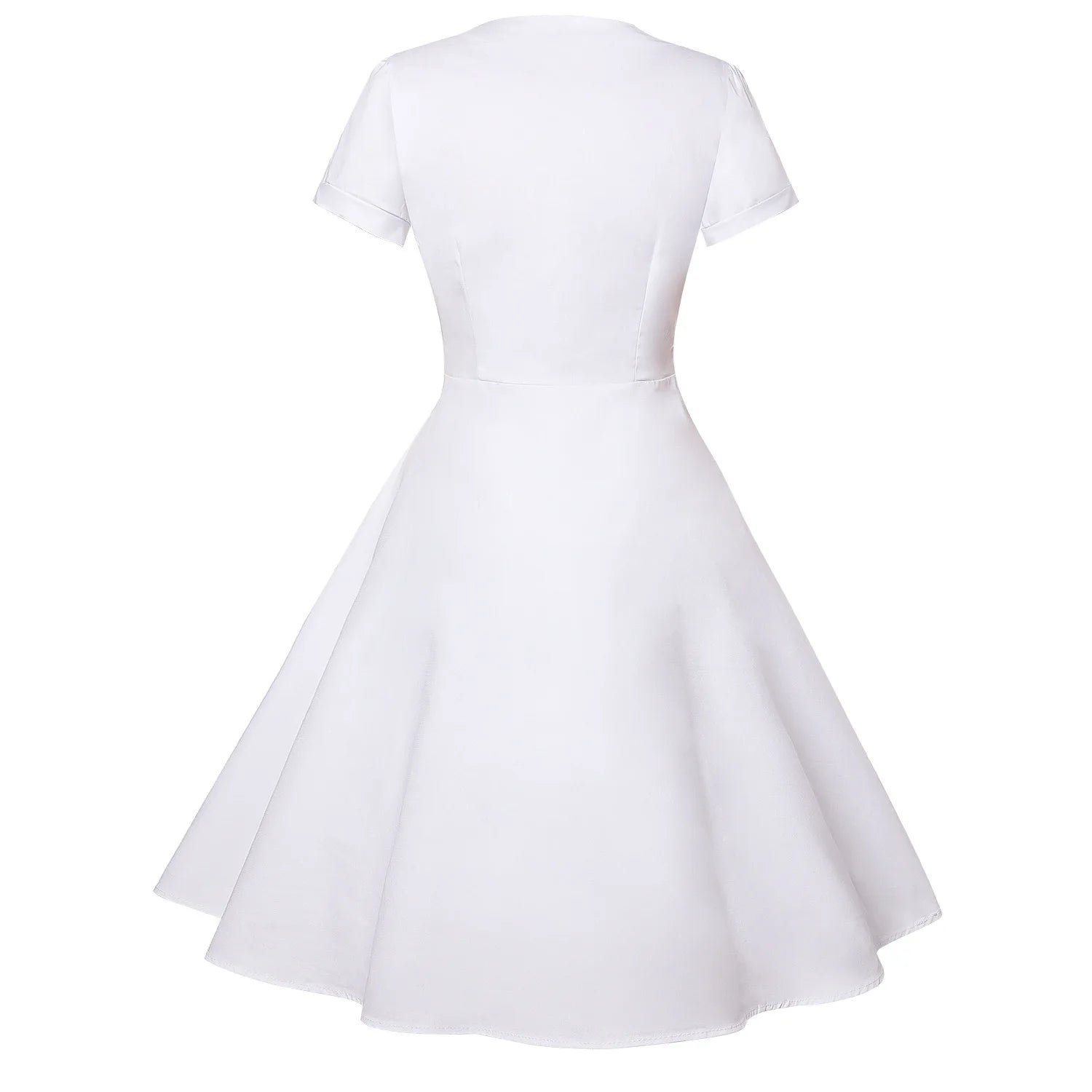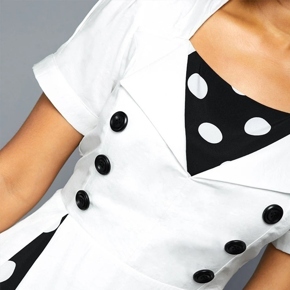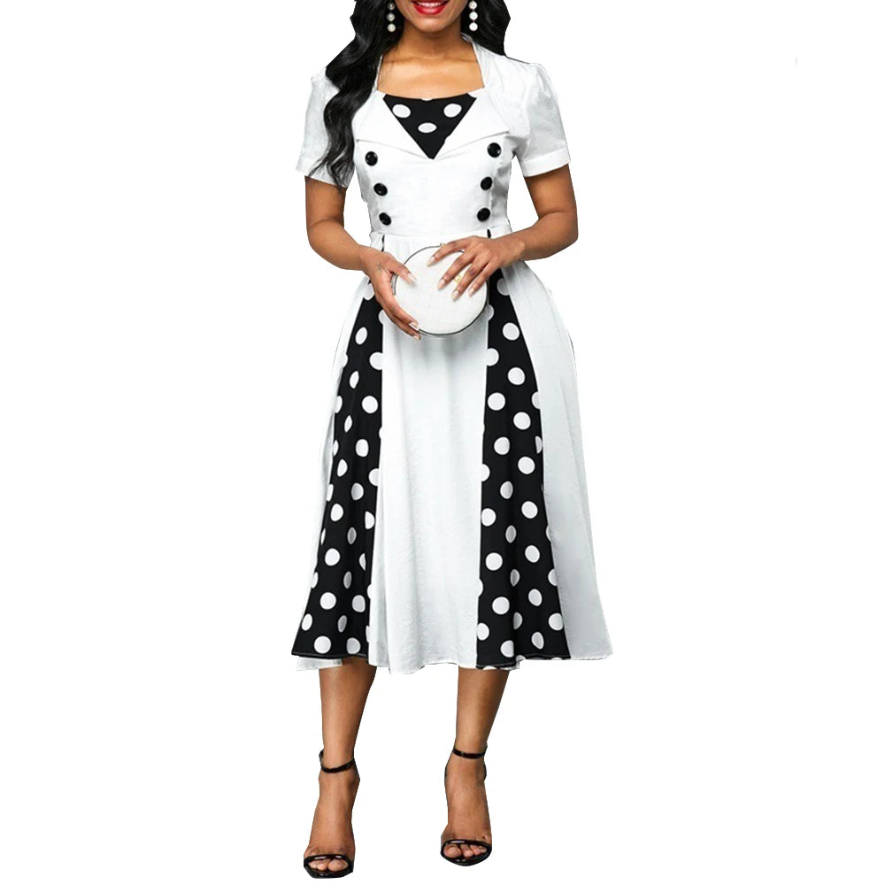 Vintage Dot Print Swing Pin Up Summer Party Dresses Women Short Sleeve High Waist A-Line Dress Elegant Casual Robe Vestidos