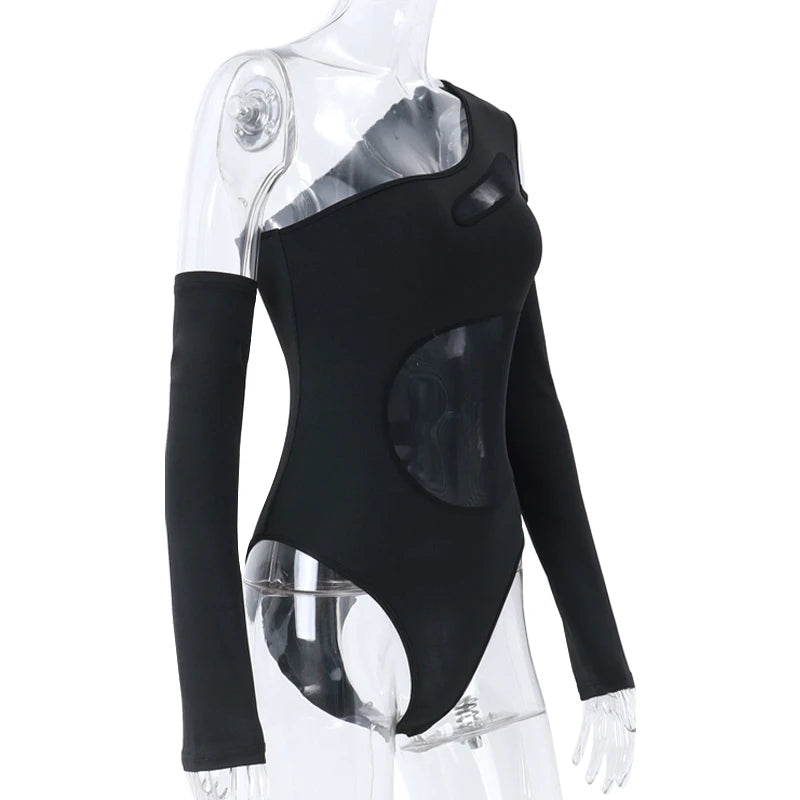 WhereMery Sexy Hollow Out See Through Mesh Bodysuit Women's Off Shoulder Long Sleeve Skinny T Shirts Gothic Aesthetic Bodysuits