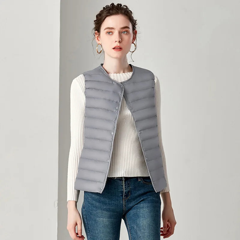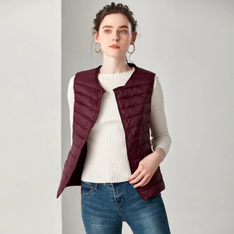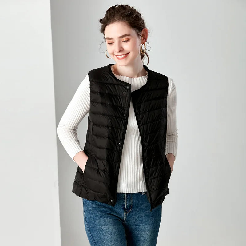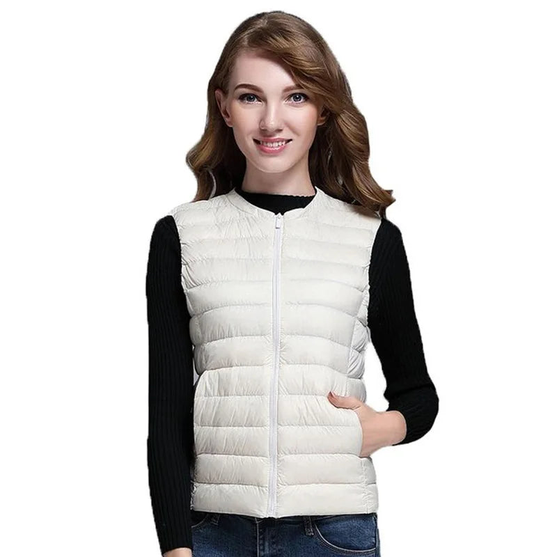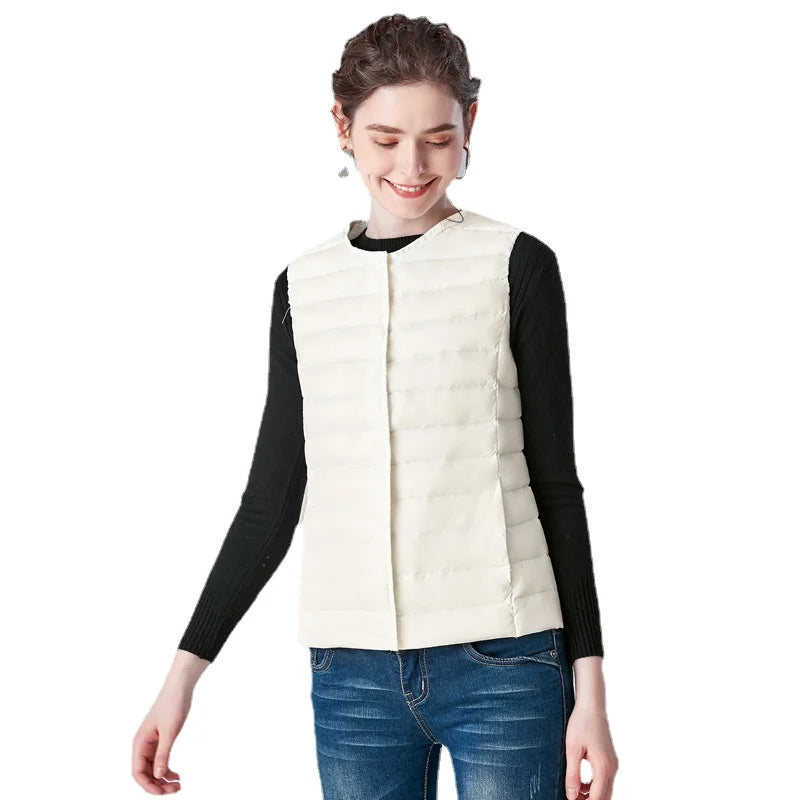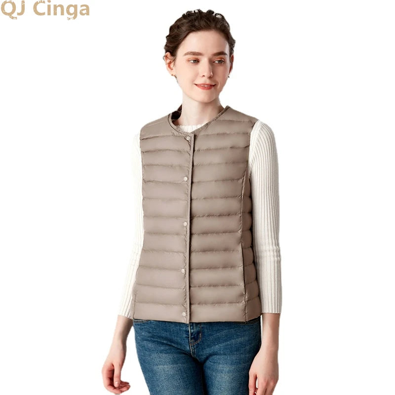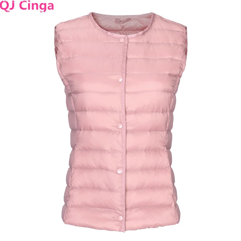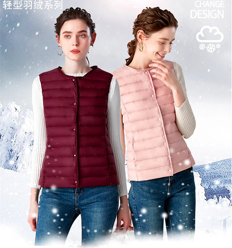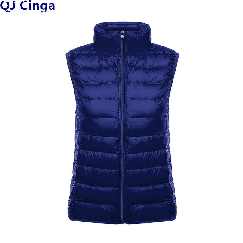 White Stand Collar Women's Sleeveless Down Vest Coat Winter Thin Slim Business Vests White Blue Black Red Women Waistcoat 3XL