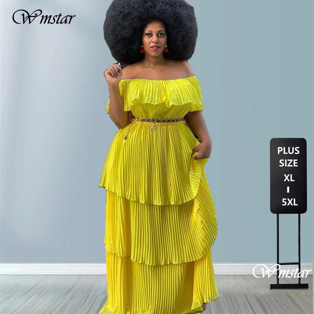 Wmstar Plus Size Party Dress Women Solid Off Shoulder Pleated Fashion Chiffon Elegant Maxi Dresses 2022 Wholesale Dropshipping