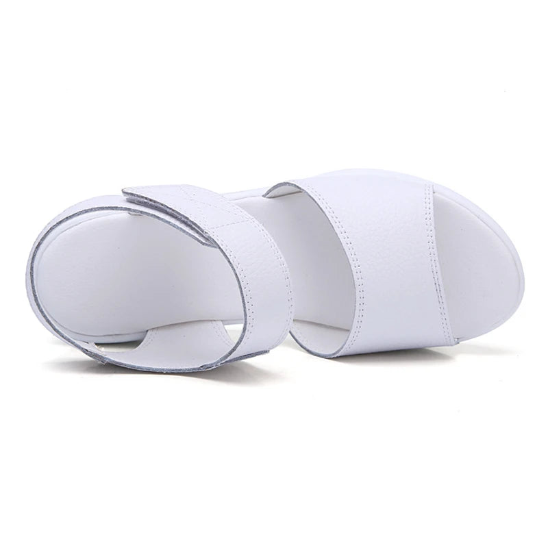 WOIZGIC Women's Mother Ladies Female Genuine Leather Shoes Sandals Woman Platform Hook Loop Casual Summer Cool Beach AM-9018