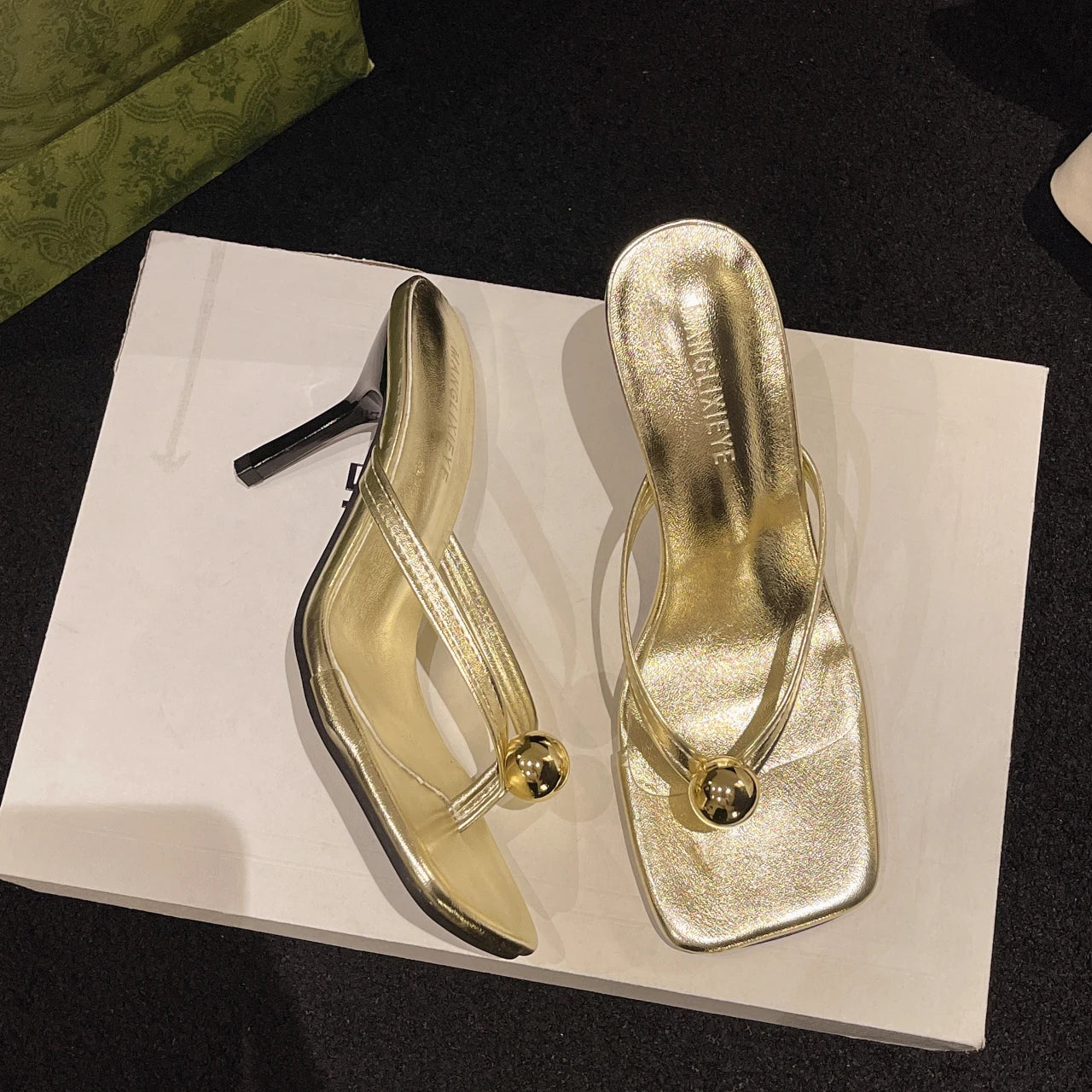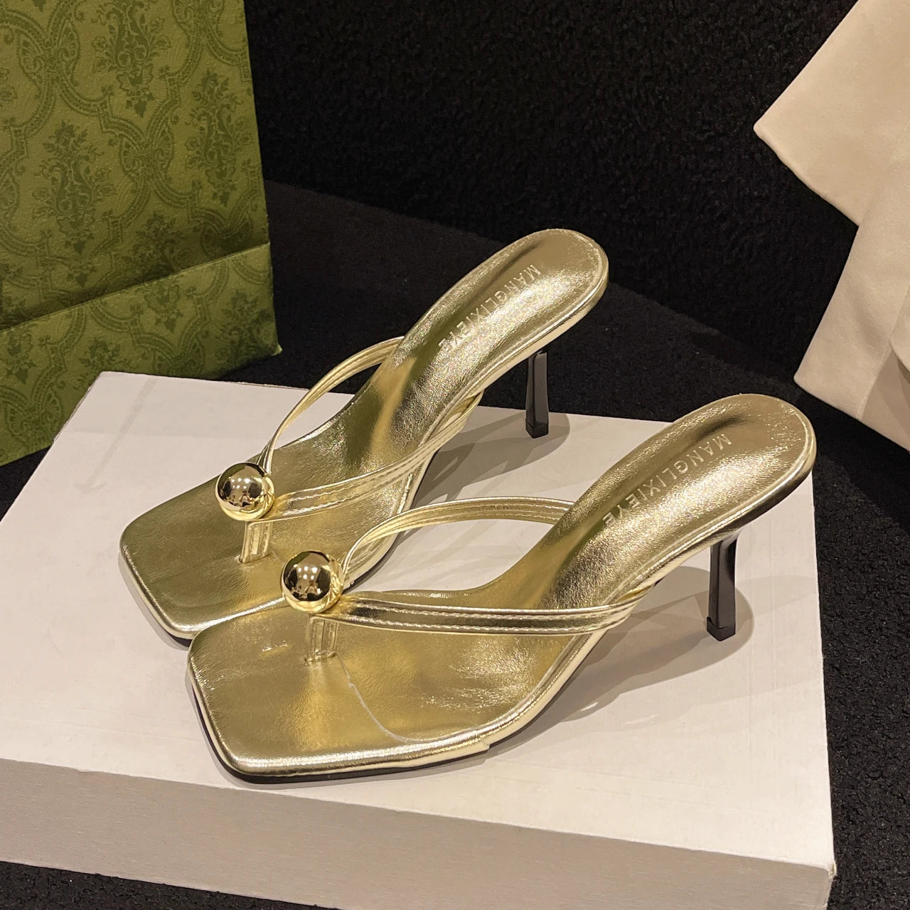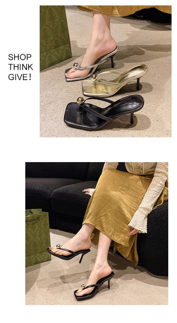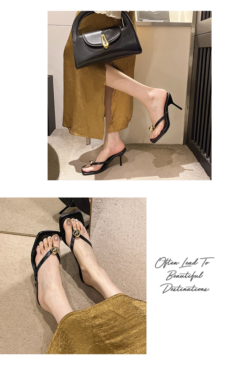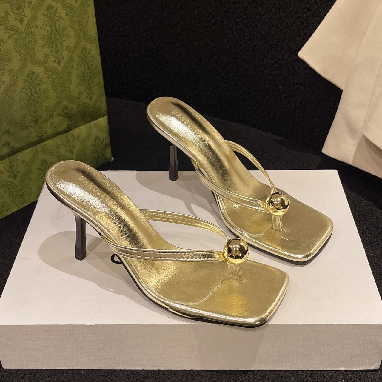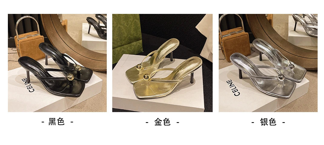 Women High Heels Slippers Designer Heeled Sandals Elegant Shoes Woman Summer 2025 Trend Fashion Fliop Flops Casual Slides Muje