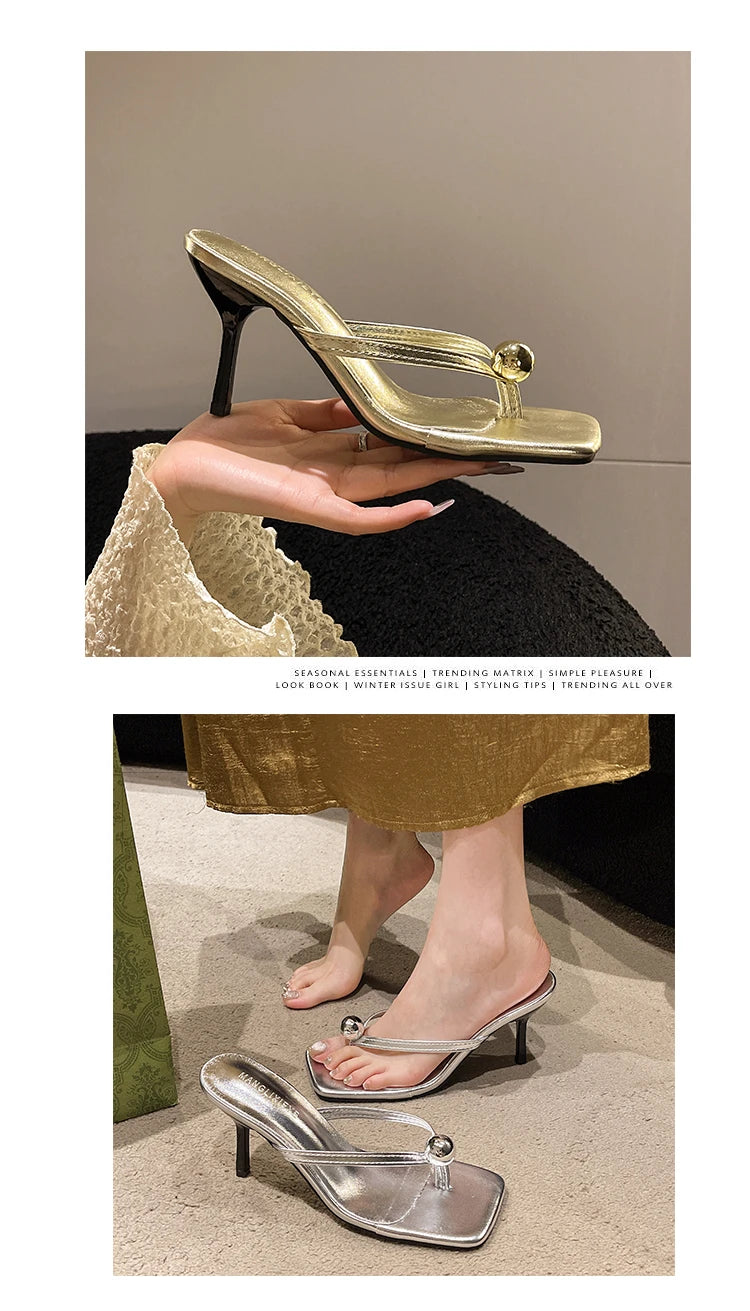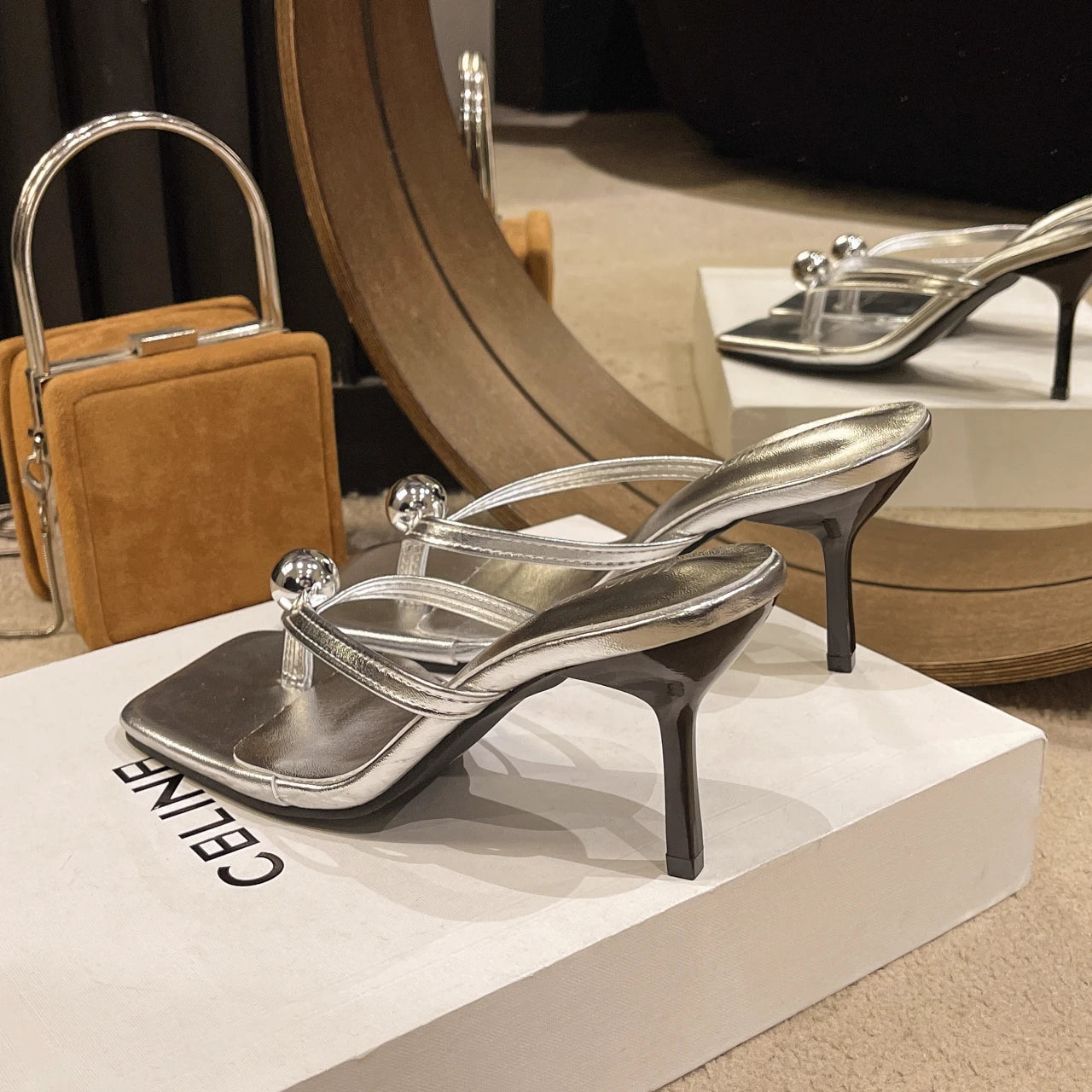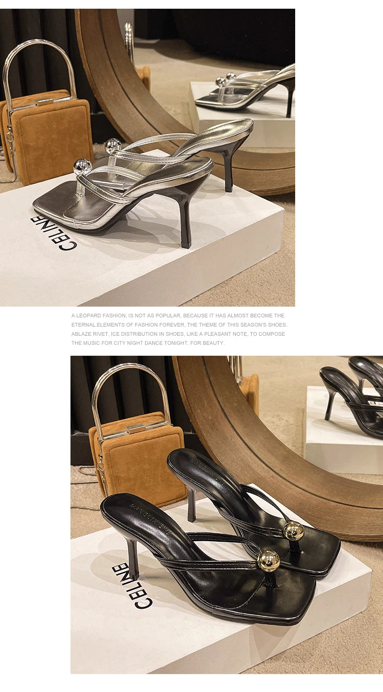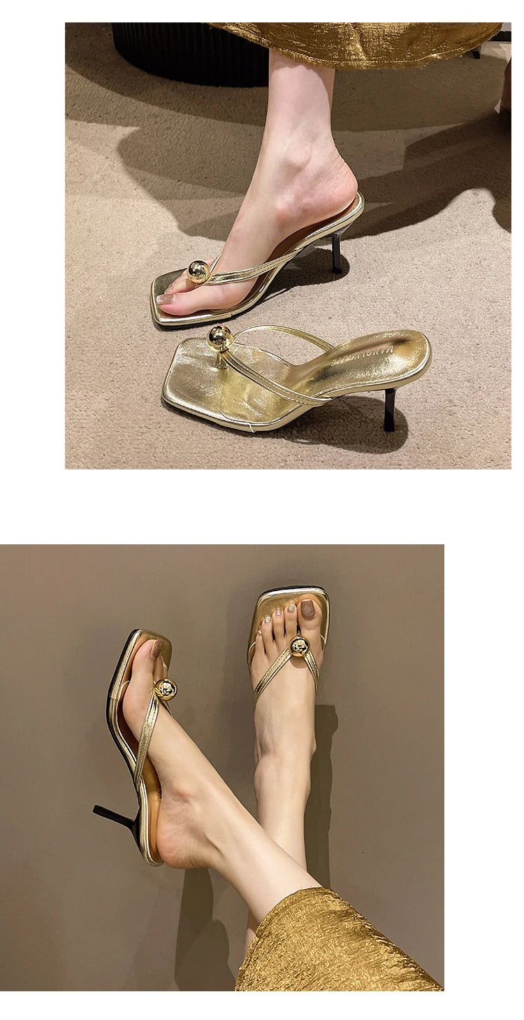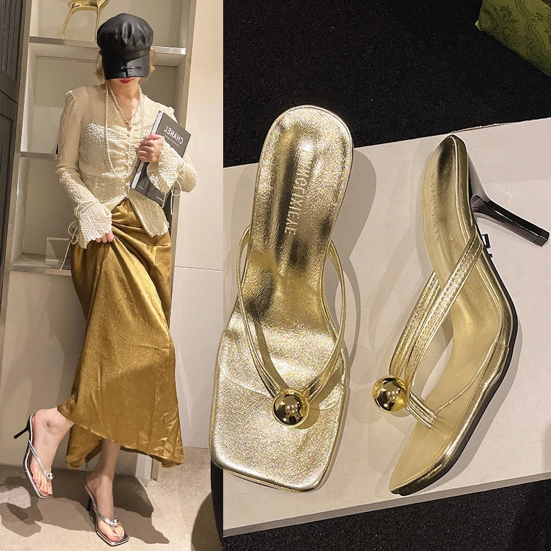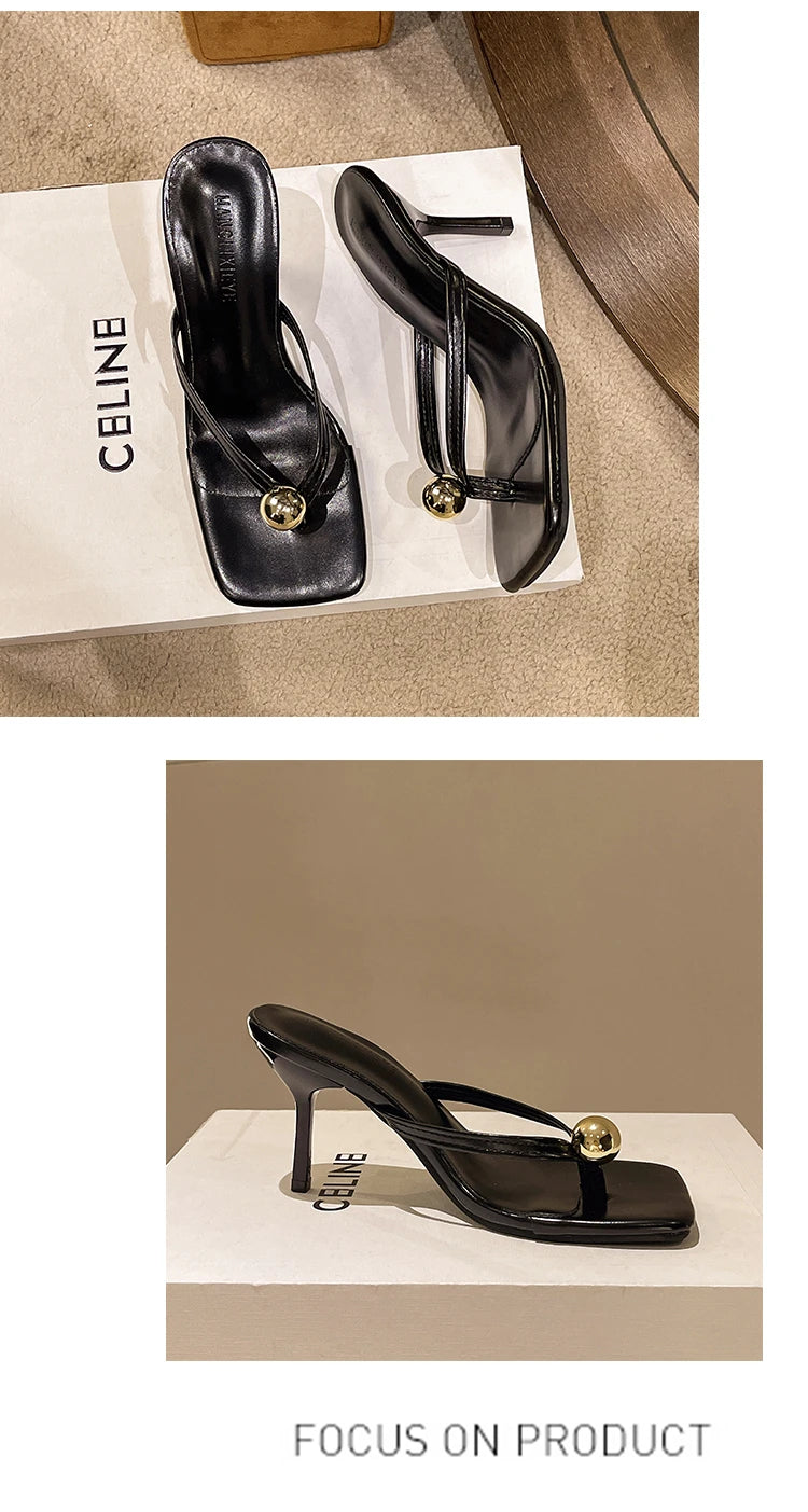 Women High Heels Slippers Designer Heeled Sandals Elegant Shoes Woman Summer 2025 Trend Fashion Fliop Flops Casual Slides Muje