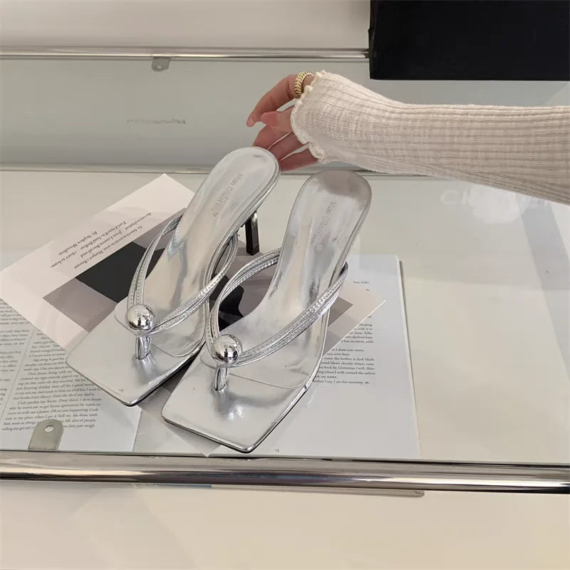 Women High Heels Slippers Designer Heeled Sandals Elegant Shoes Woman Summer 2025 Trend Fashion Fliop Flops Casual Slides Mujer