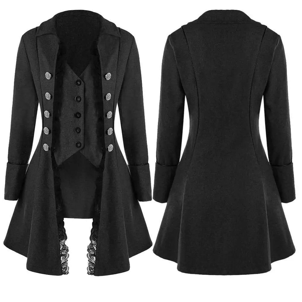 Women Jacket Coat Medieval Retro Lace Victorian Gothic Long Sleeve Button Tailcoat Steampunk Halloween Party Costume Clothing