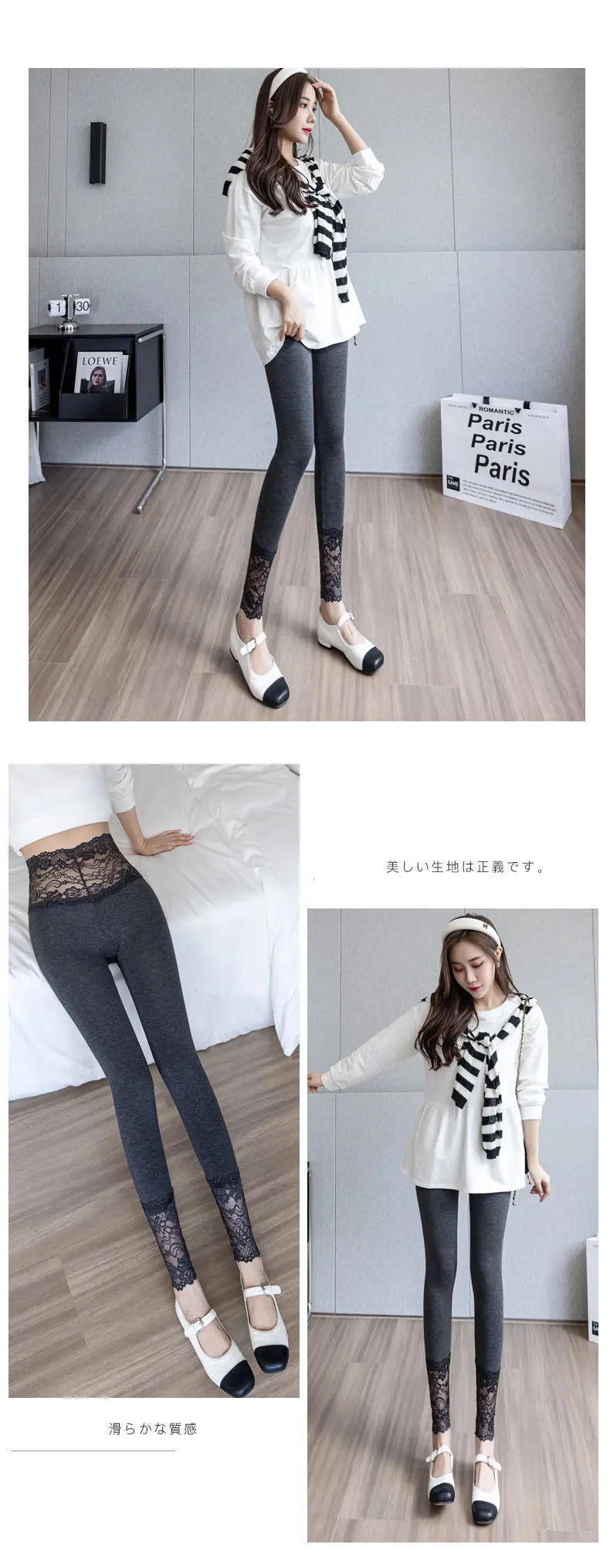 Women Leggings Lace High Waist 2023 Spring Autumn Solid Color Ladies Sexy Slim Thin Pants Stretch Female Modal Push Up Leggings