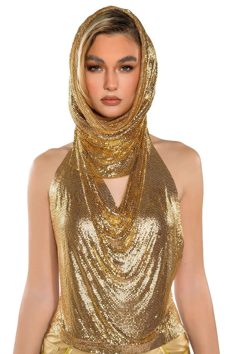 Women Metal Sequins Tank Top With Turban 2 Piece Sexy V Neck Backless Suspender Top Rave Festival Party Nightclub Camisole