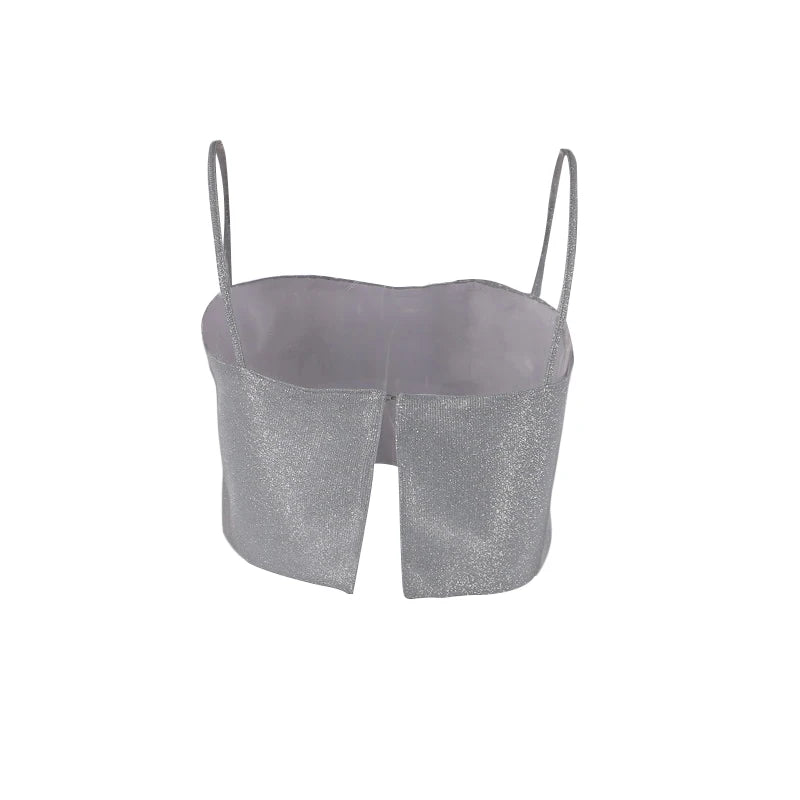 Women Silver Shining Sequin Camisole Summer Fashion Sexy Low Cut Suspender Tops Crop