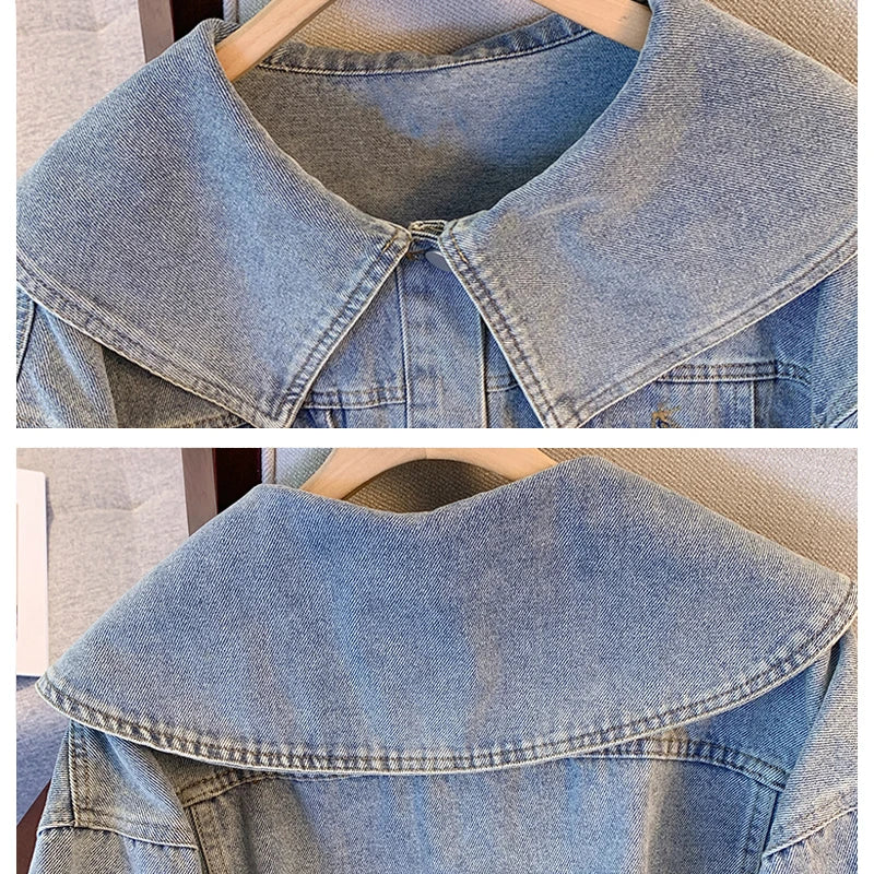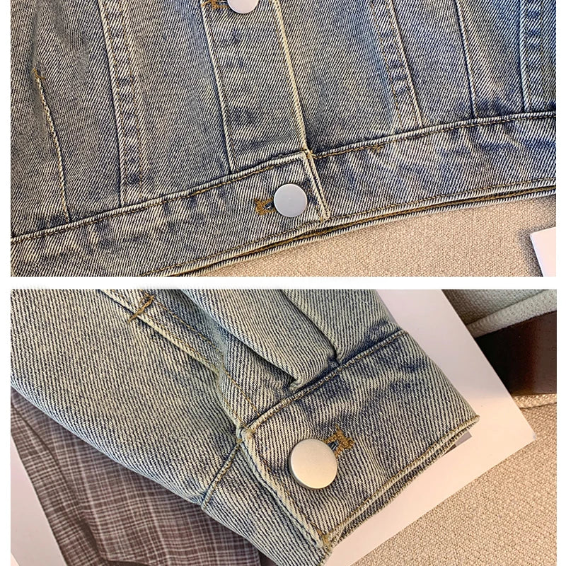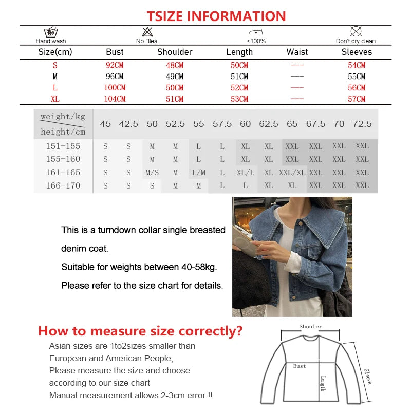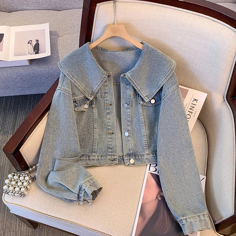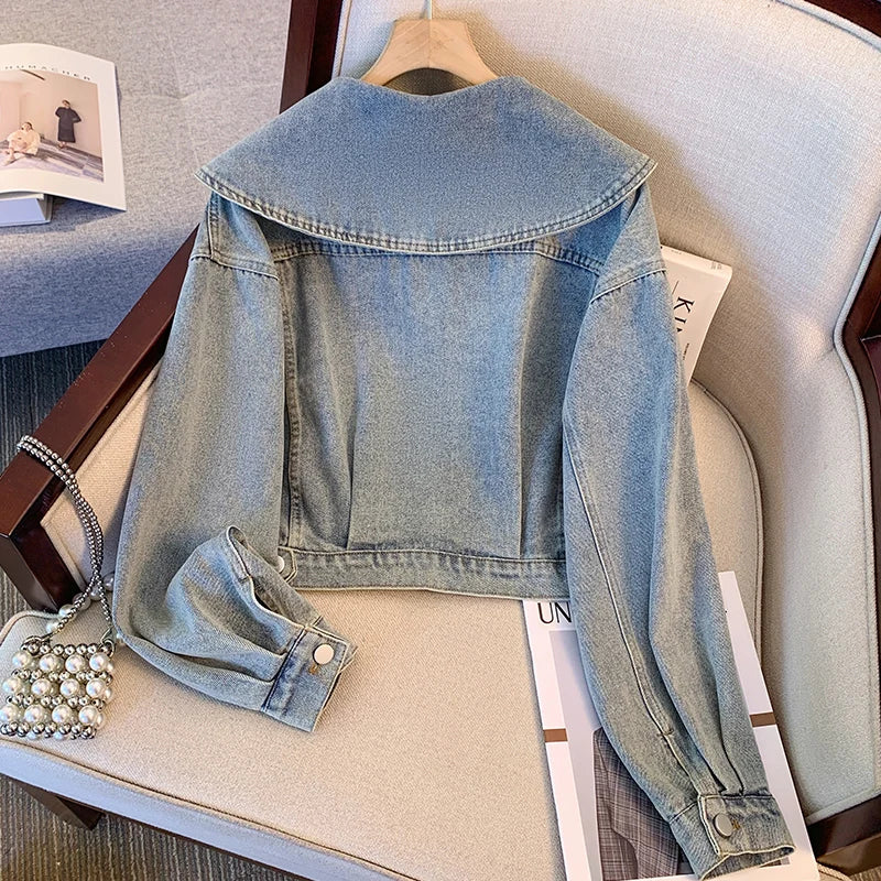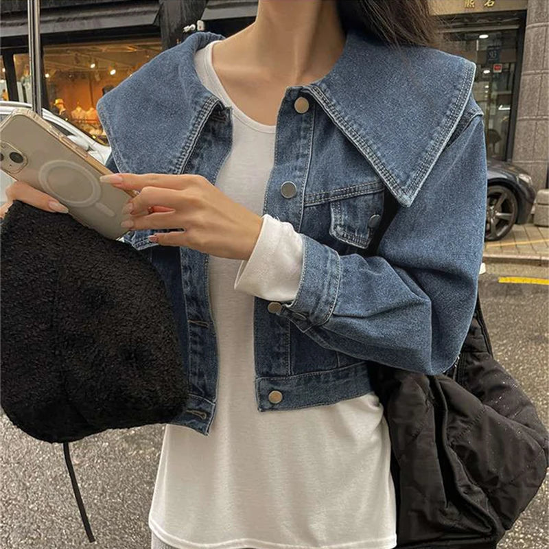Women Turndown Collar Denim Jacket Casual High Waist Long Sleeved Button Up Short Jacket Fall Vintage Coat Streetwear Outerwear