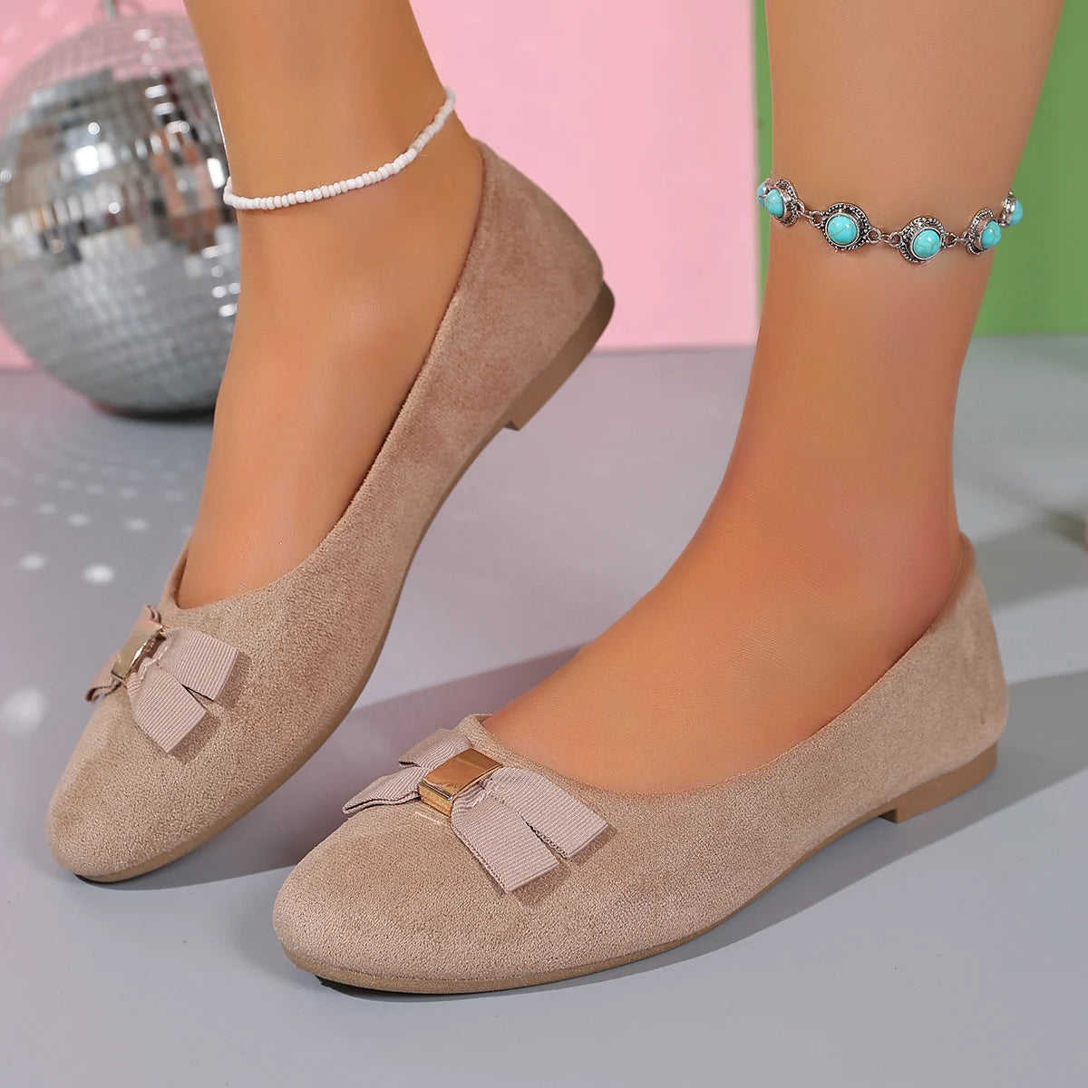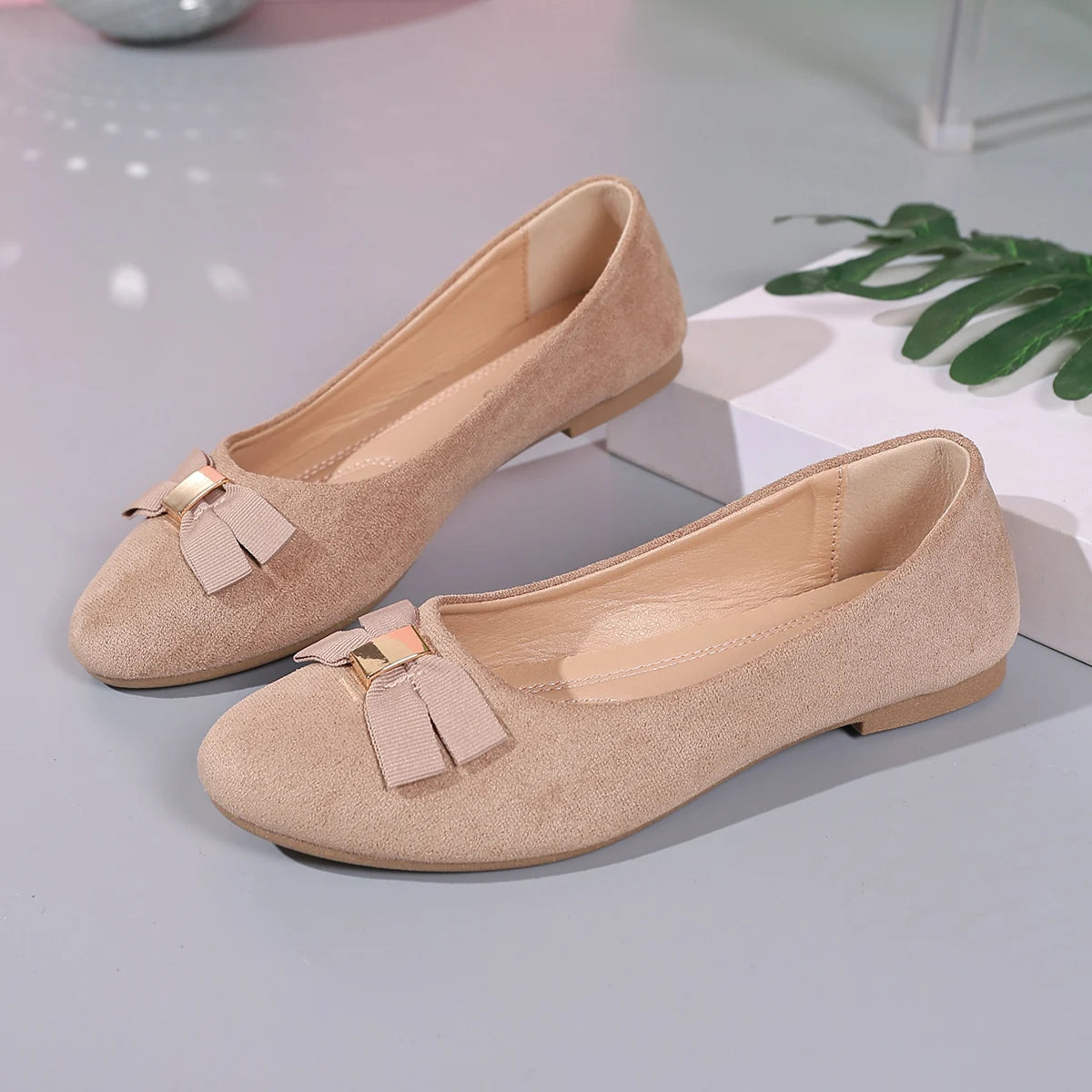 Women's ballet flats - beige, shallow mouth with woven decorative upper, comfortable, suitable for daily casual wear, princess-s