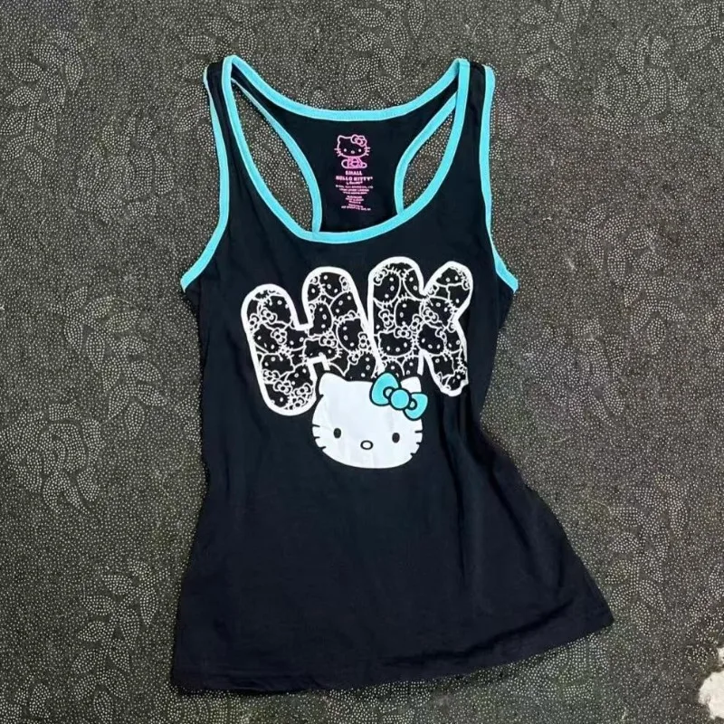 Women's Sexy Hottie Camisole Japanese Subculture Cartoon Print Halter Vest Harajuku Splicing Fashion Tanks Female Slim Chic Tops