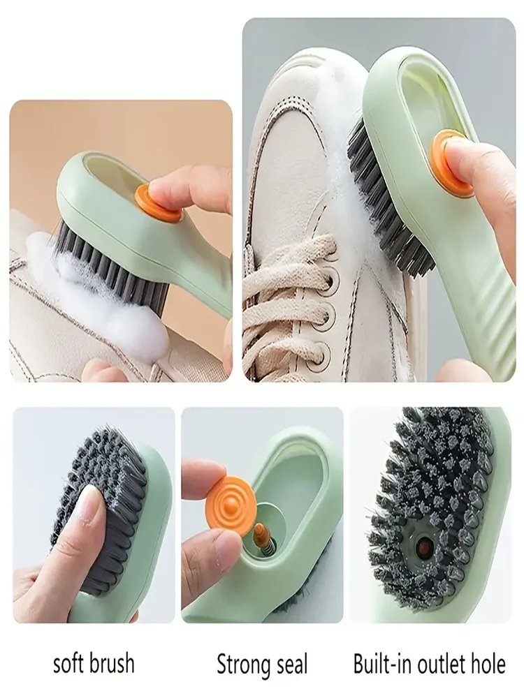 1pc Multi-function automatic spot shoe brush soft hair hand pressure hanging hole suitable for clothing carpet plastic handles