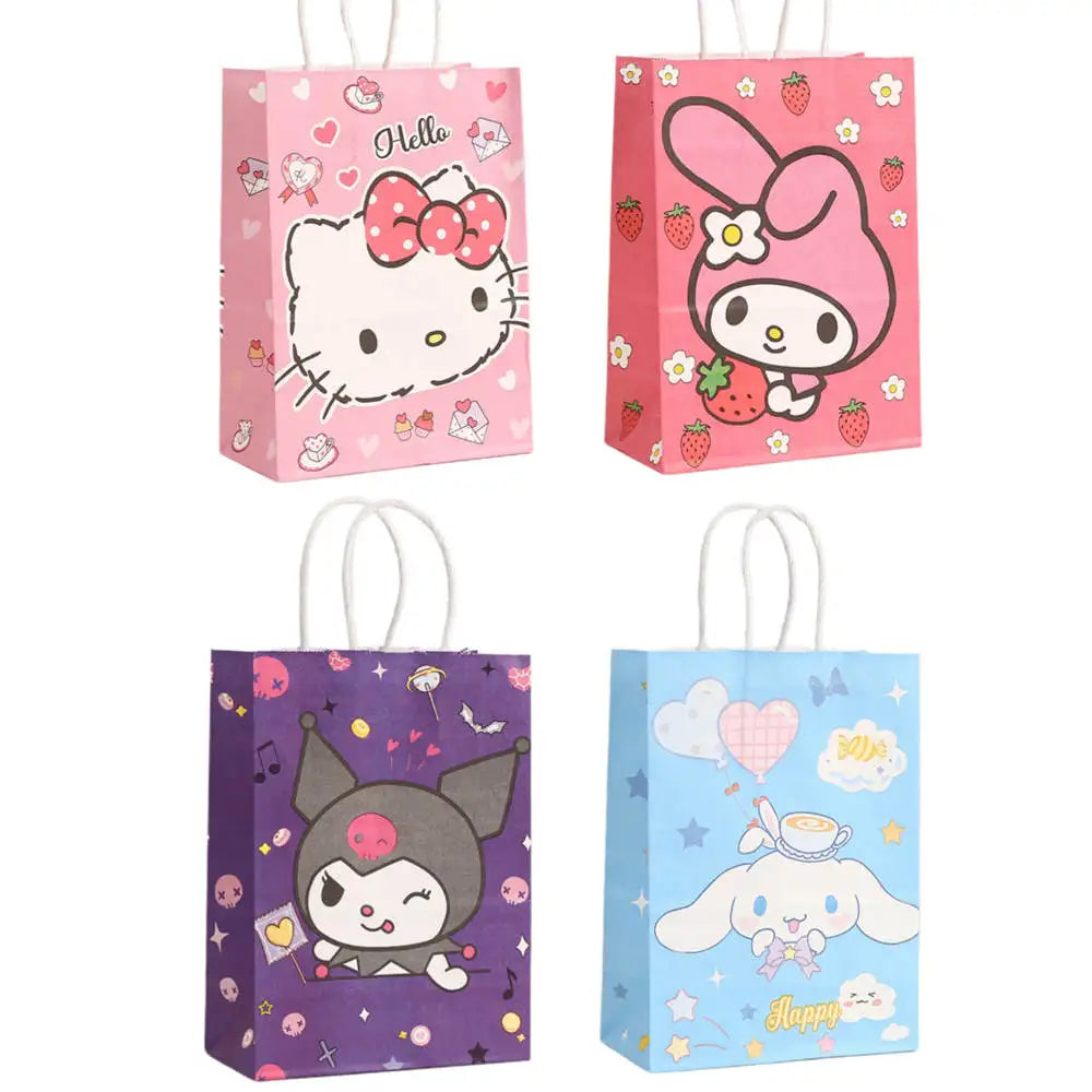 2/4/6/12/20pcs Sanrio Series Kuromi 21x15x8cm Kraft Paper Bag Anime Cartoon Print Children Party Supplies Candy Gift Bag Handbag