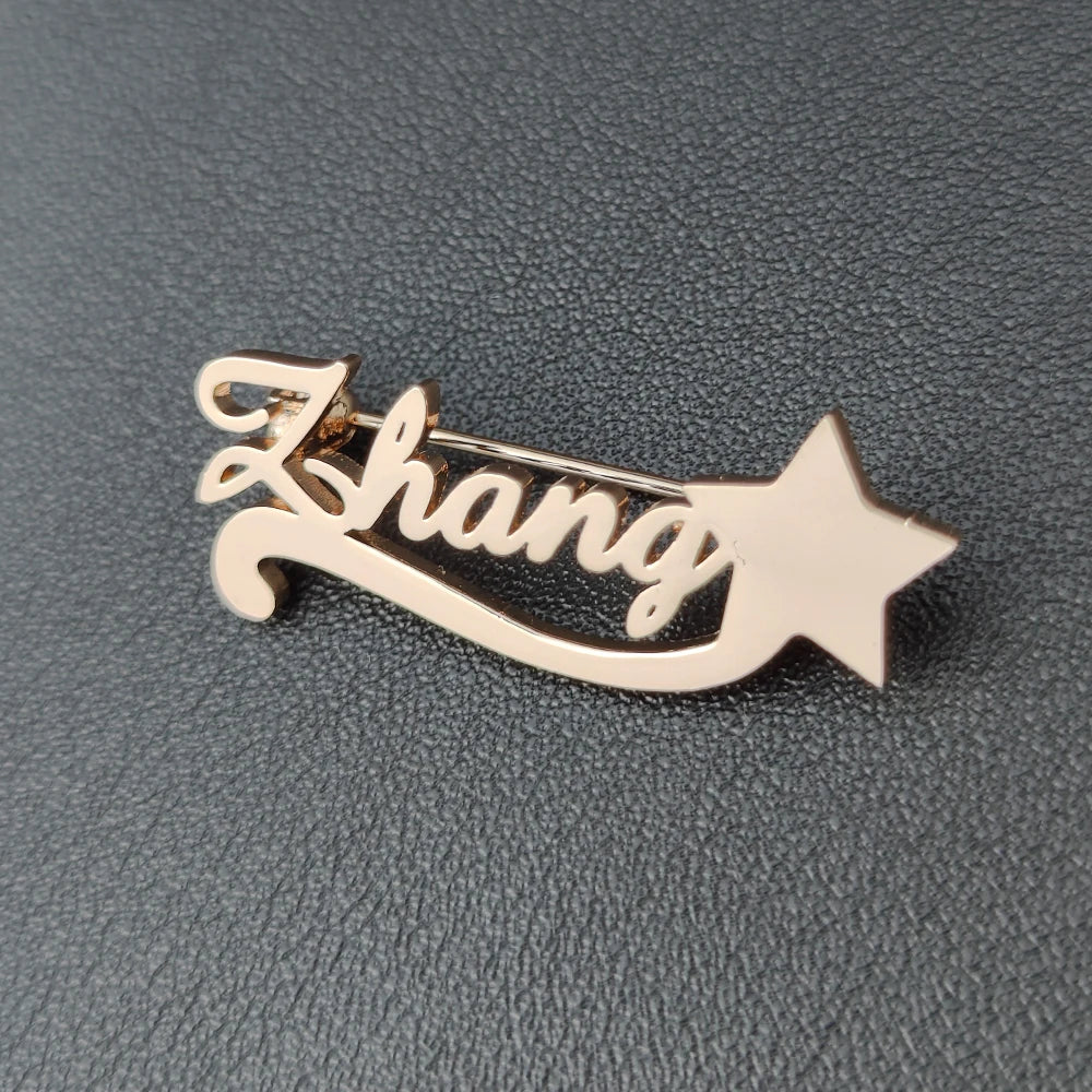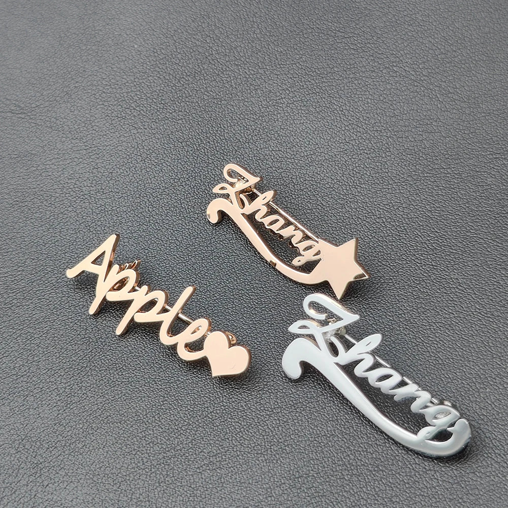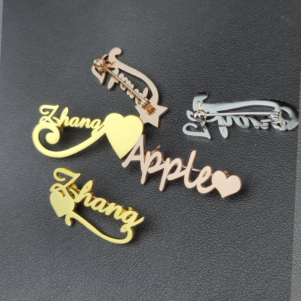 Personalized Custom Women Name Brooch with Hearts Stars Stainless Steel Nameplate Lapel Badges Fashion Temperament Jewelry Best Gifts