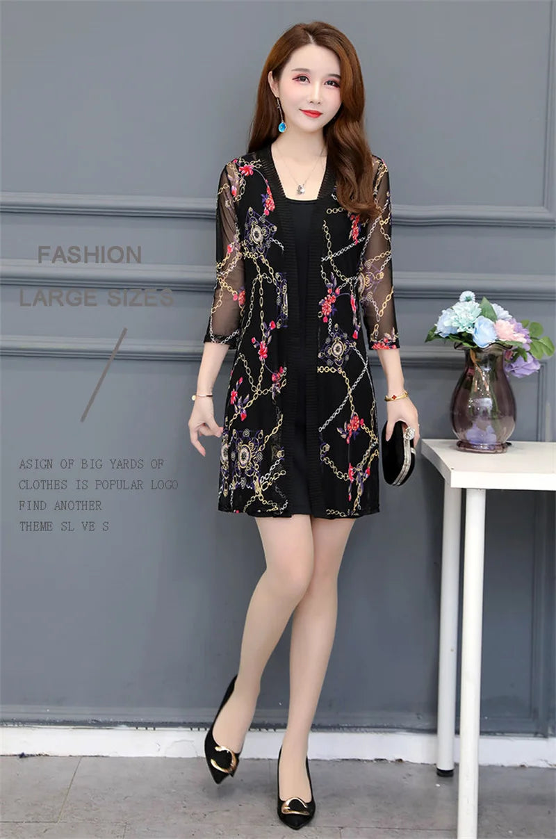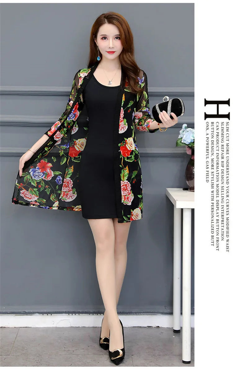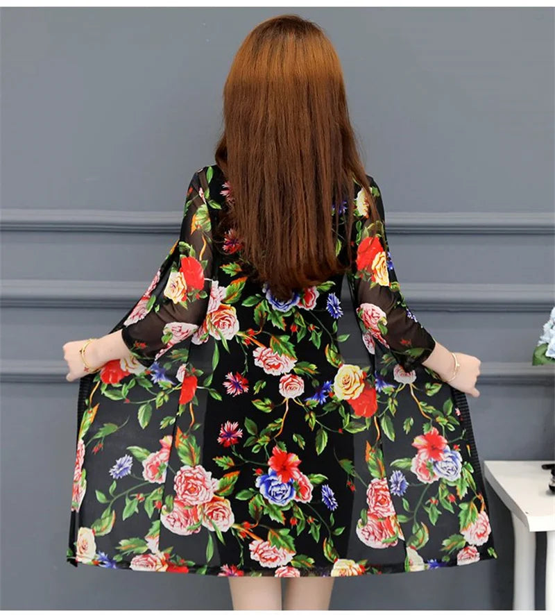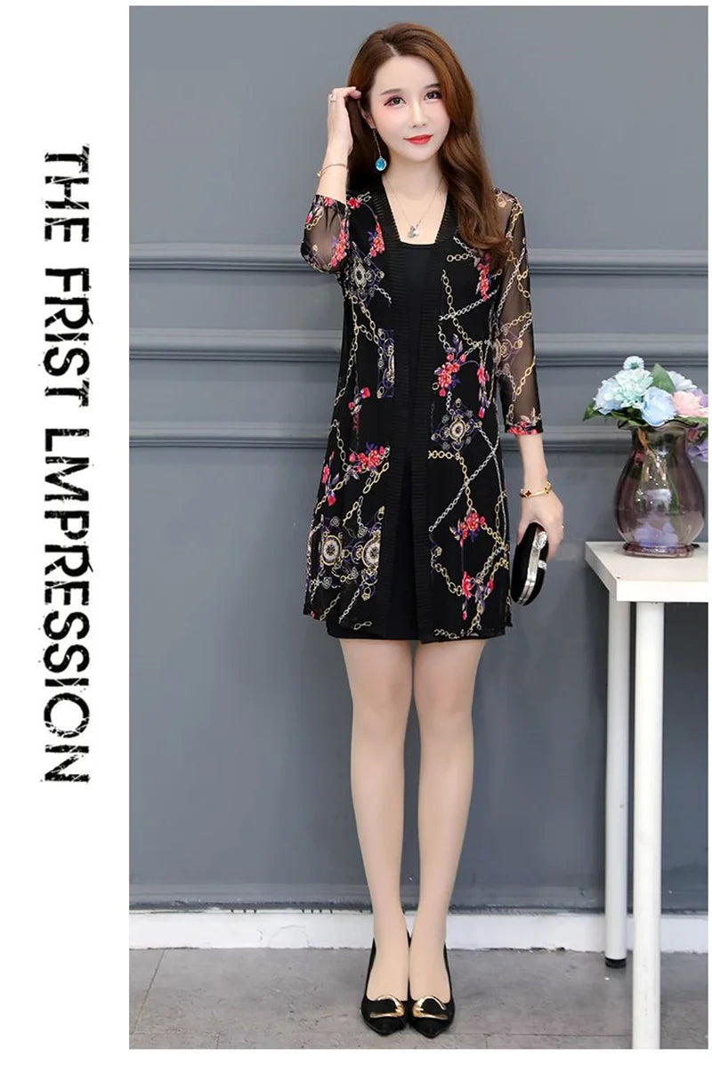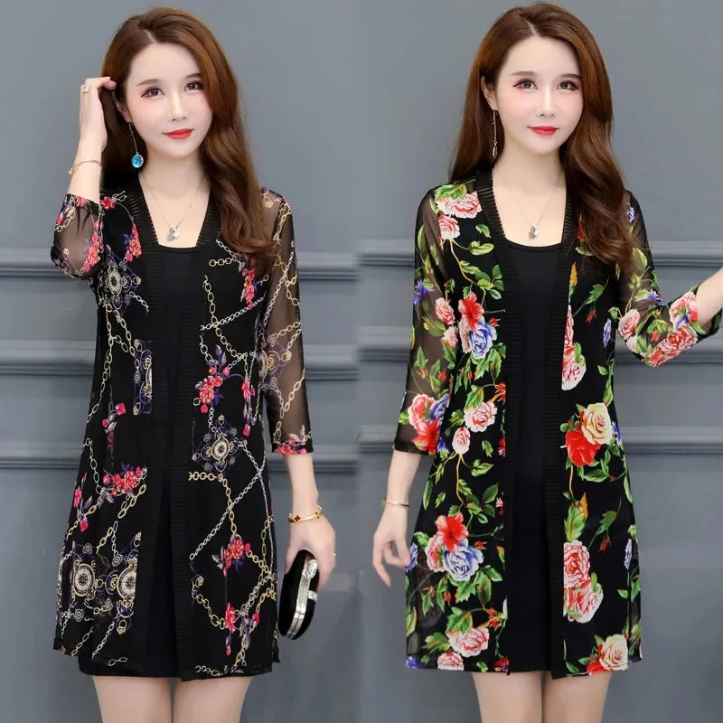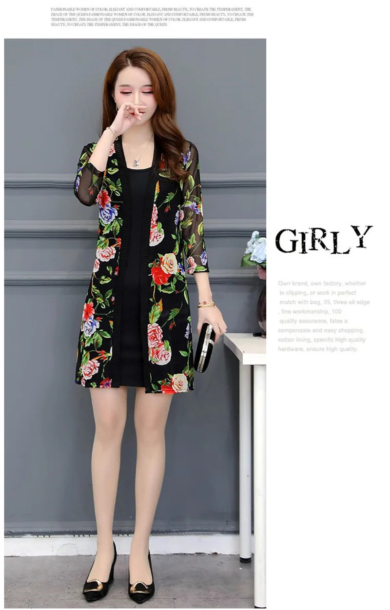 2024 Female Mid Length Large Size Sun Protection Cardigan Tops Coat Women Summer Gauze Lace Print Thin Sun Sunscreen Jacket 5XL