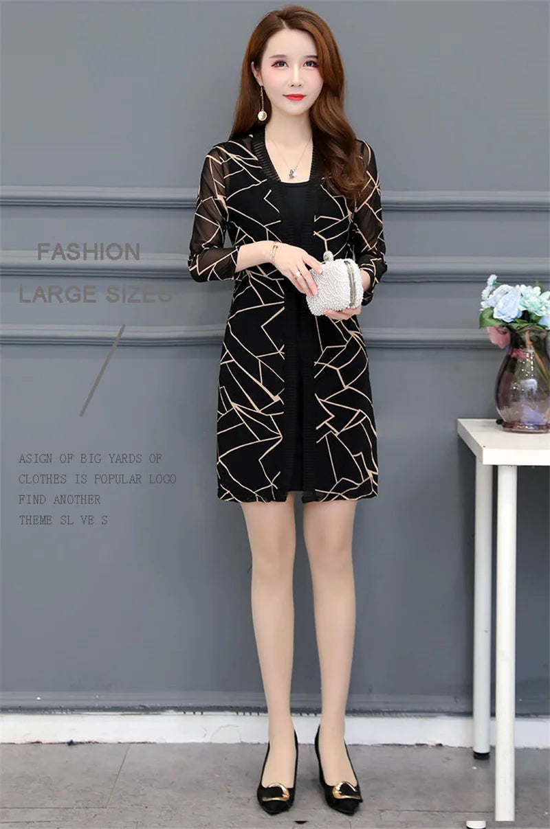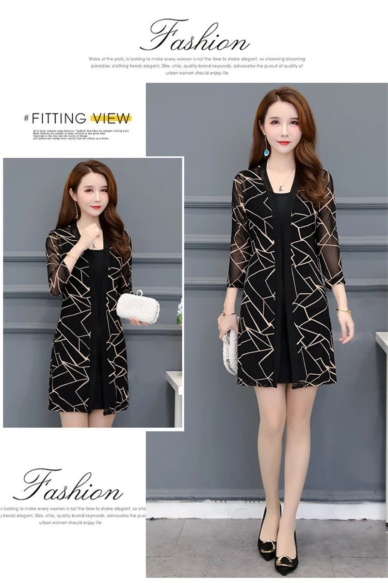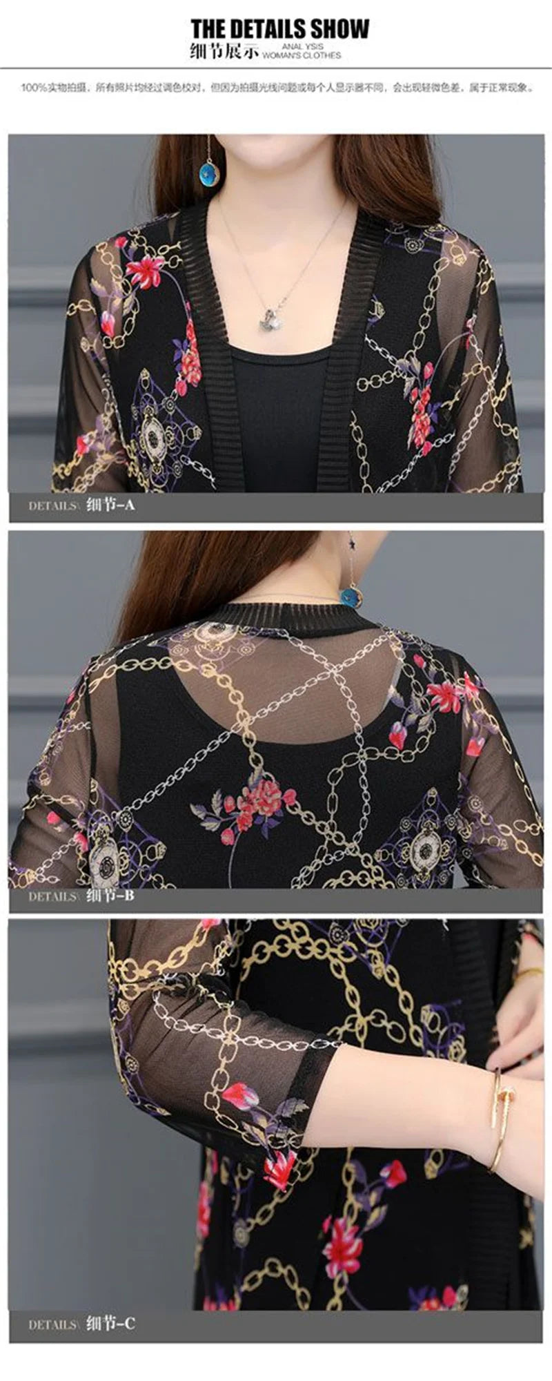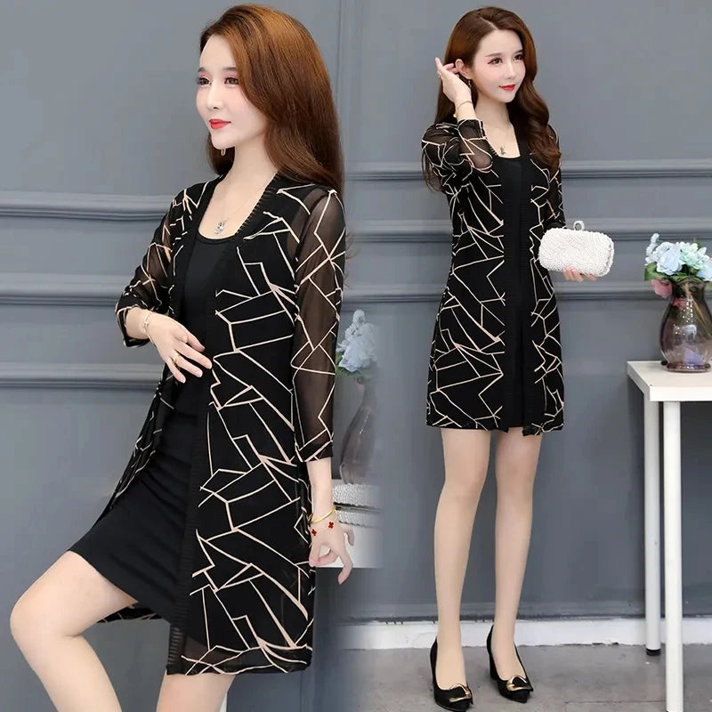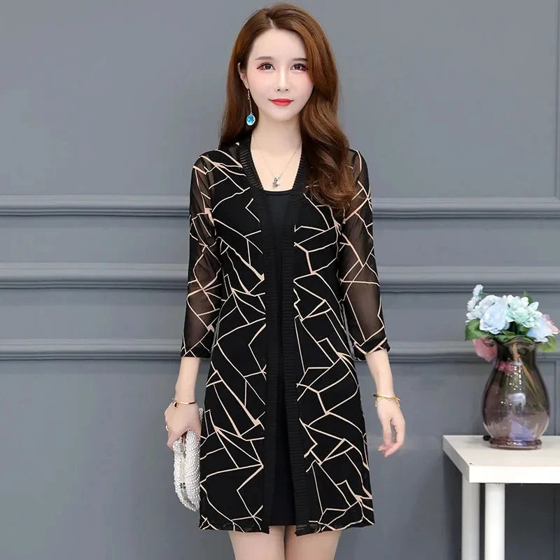 2024 Female Mid Length Large Size Sun Protection Cardigan Tops Coat Women Summer Gauze Lace Print Thin Sun Sunscreen Jacket 5XL