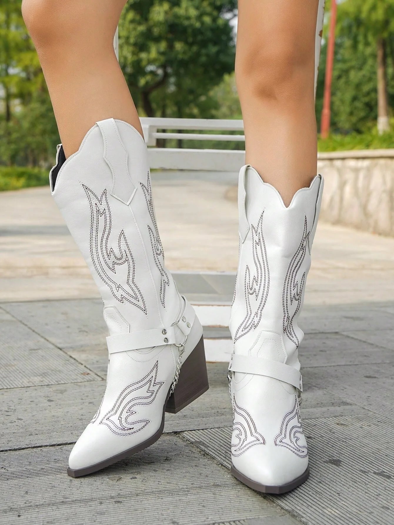 Women Boots Autumn Winter Fashion Embroidered Western Cowboy Boots Women Casual Comfortable Pointed Toe Thick Heel Shoes Woman