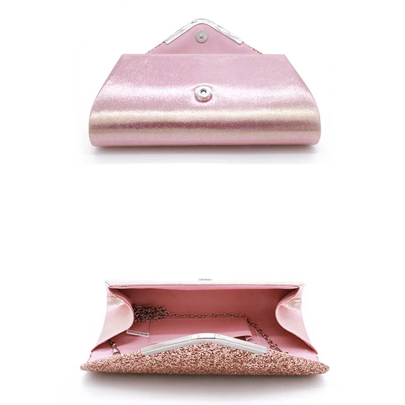 Women Clutch Glitter Sequins Evening Party Handbag Portable Black Gold Silver Pink Wedding Clutch Purse Envelope Clutch