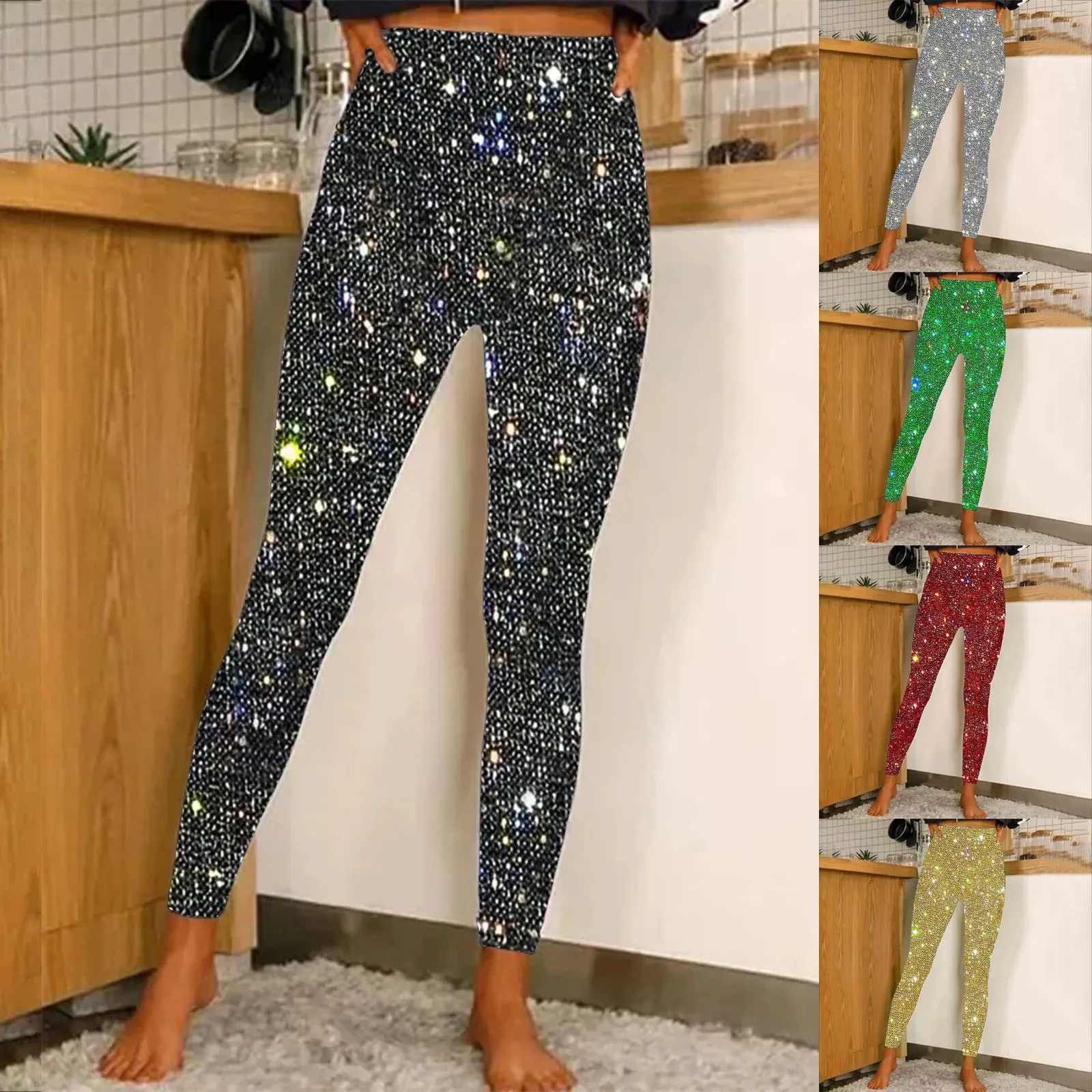 Women Sequin Leggings High Waist Bottoming Trousers Fashion High Waist Party Nightclub Leggings Sexy Ladies Slim Long Pants